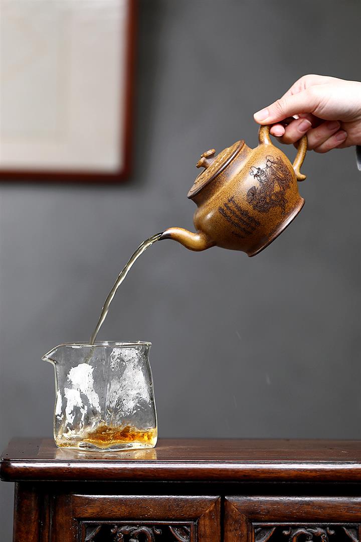 【泥料特點】砂土氣重,似淳實農民,日久使用,漸露鋒芒,養成變化,溫潤莊重。紫砂是壹種雙重氣孔結構的多孔性材質,氣孔微細,密度高。用紫砂壺沏茶,不失原味,且香不渙散,得茶之真香真味。紫砂使用越久,壺身色澤越發光亮照人,氣韻溫雅。紫砂壺長久使用器身會因撫摸擦拭,變得越發溫潤光澤。
