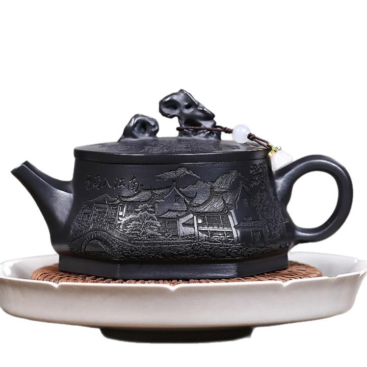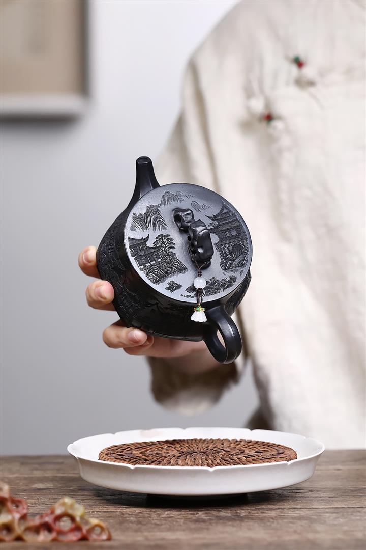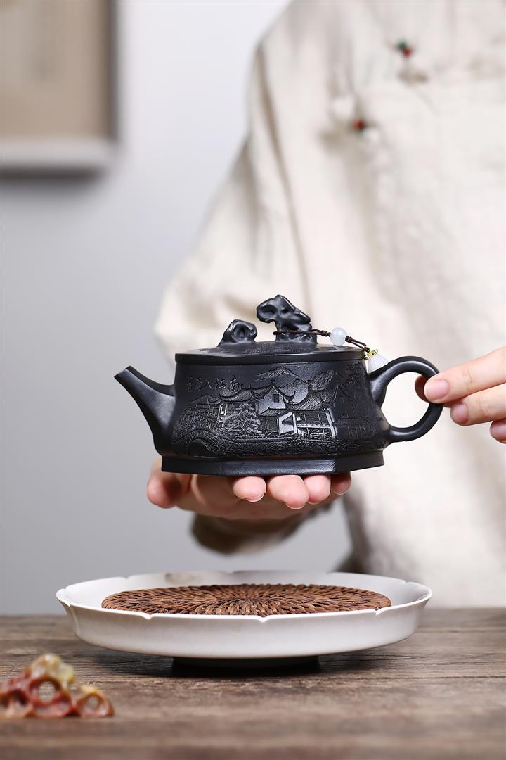 210cc原礦玄鐵石黃太湖石漢瓦泡茶壺POT9602