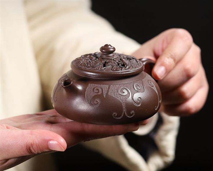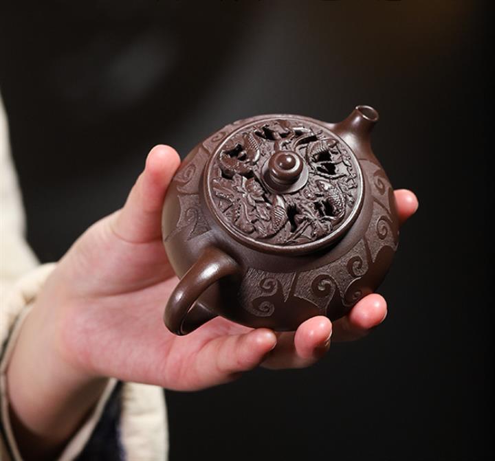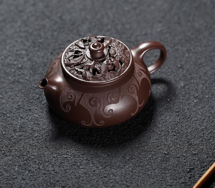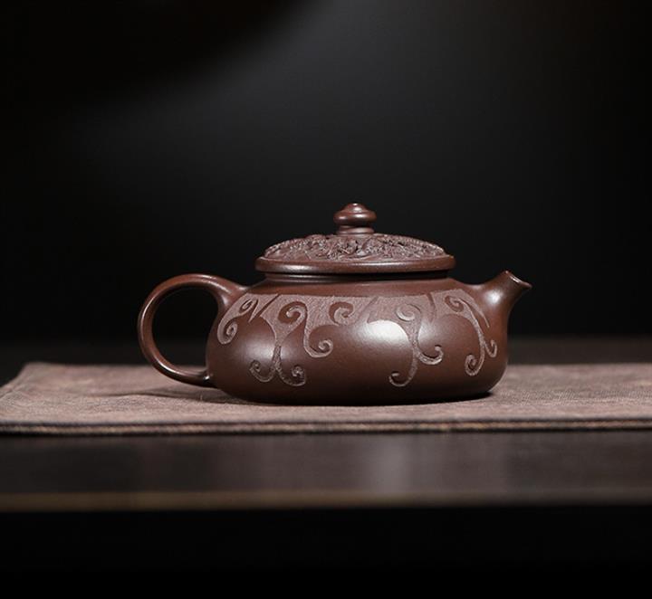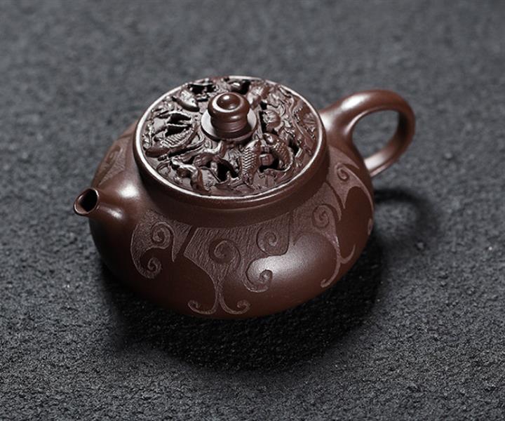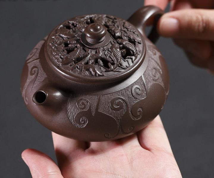 180cc原礦龍骨金砂刻畫禦景茶壺POT8142