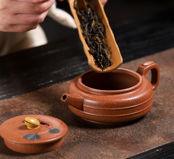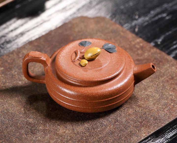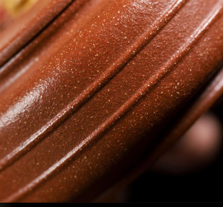 【泥料特點】砂土氣重,似淳實農民,日久使用,漸露鋒芒,養成變化,溫潤莊重。紫砂是壹種雙重氣孔結構的多孔性材質,氣孔微細,密度高。用紫砂壺沏茶,不失原味,且香不渙散,得茶之真香真味。紫砂使用越久,壺身色澤越發光亮照人,氣韻溫雅。紫砂壺長久使用器身會因撫摸擦拭,變得越發溫潤光澤。