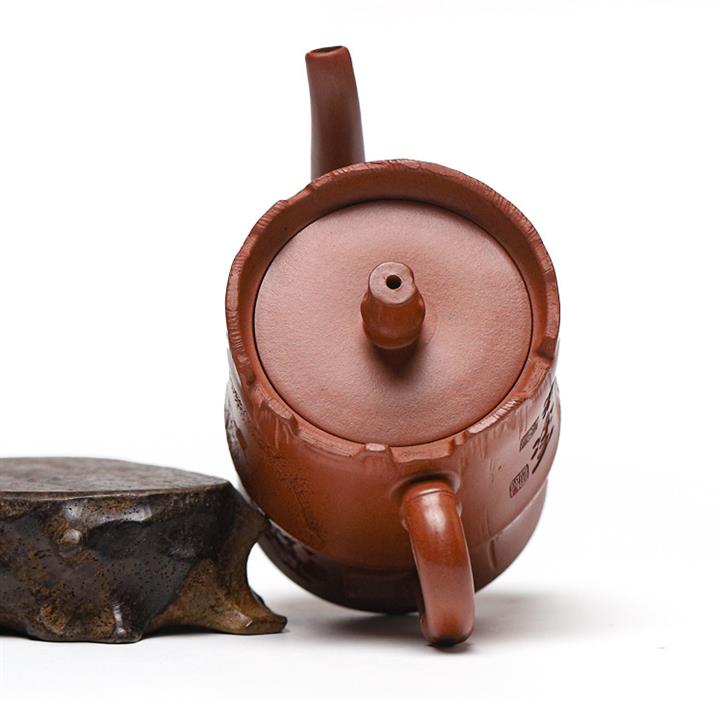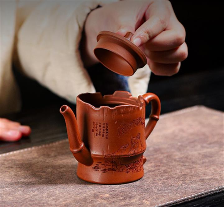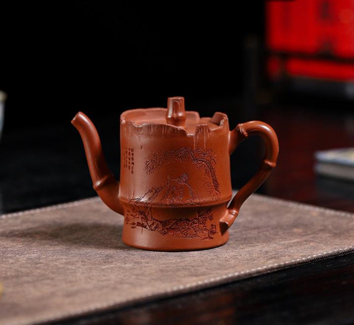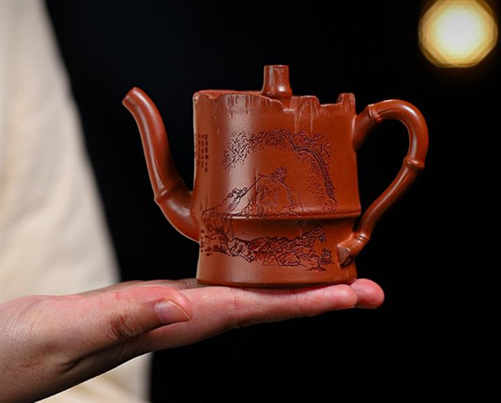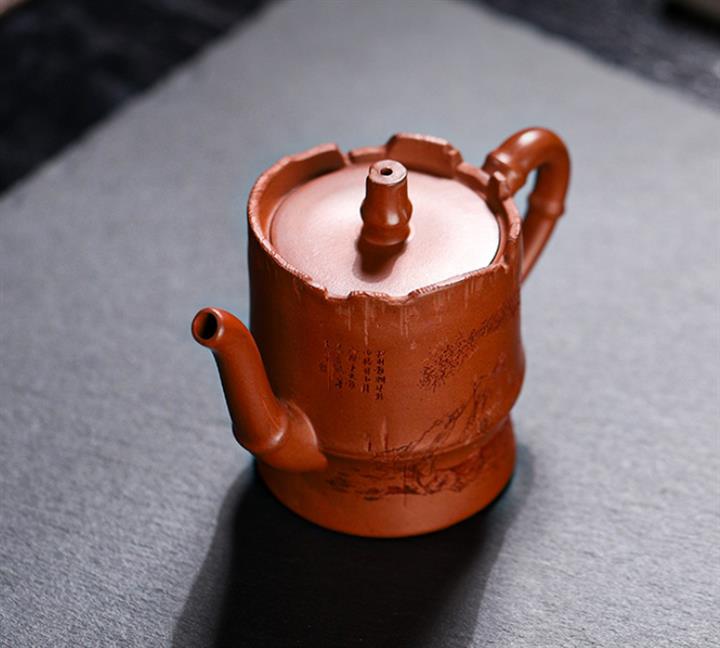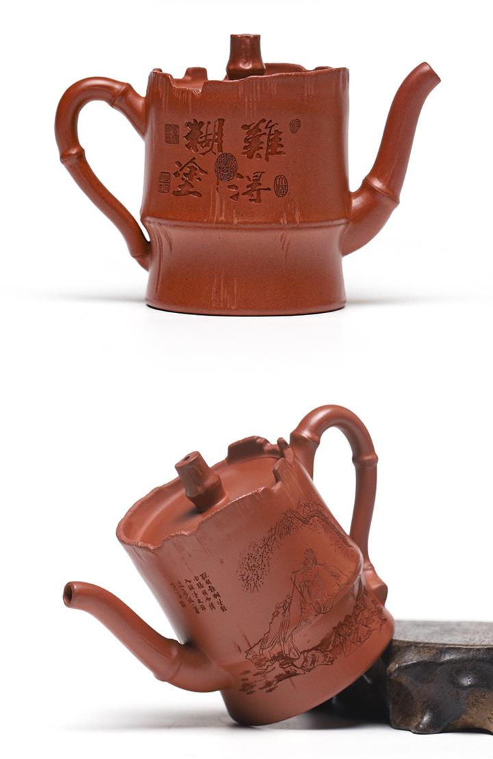 350cc原礦翡翠綠泥通身刻繪竹段茶壺POT9047