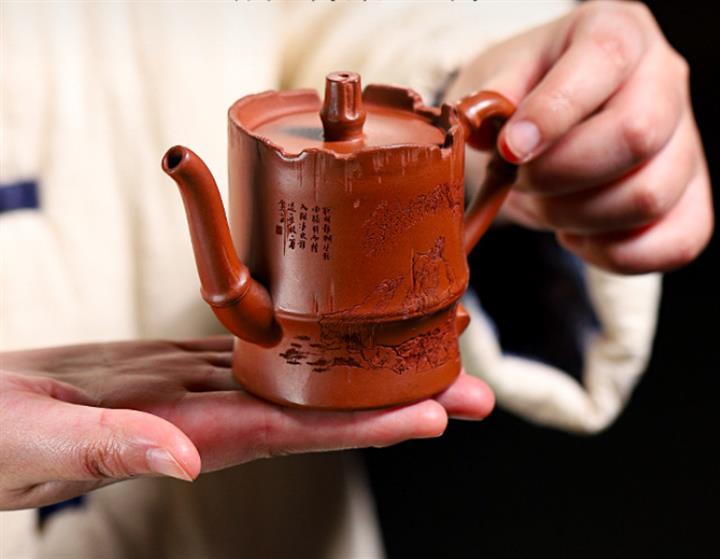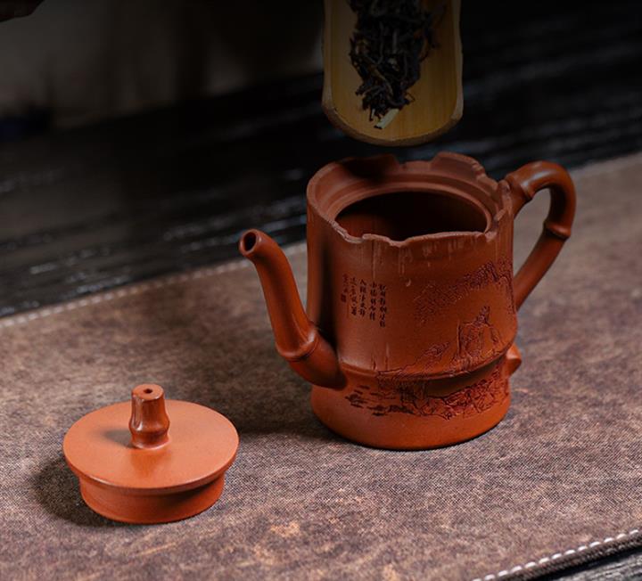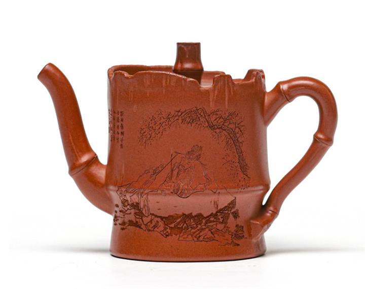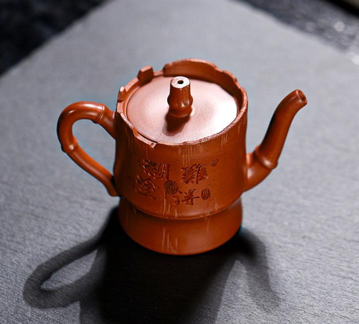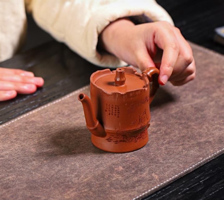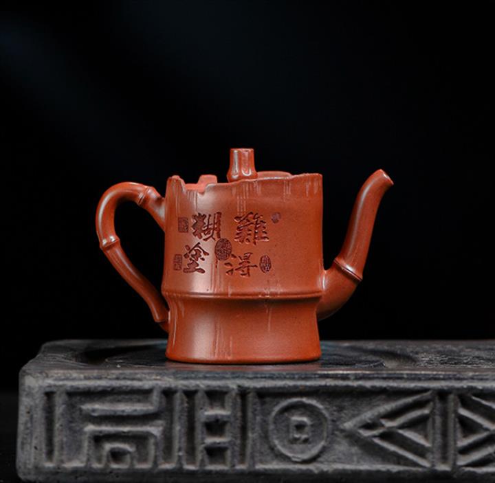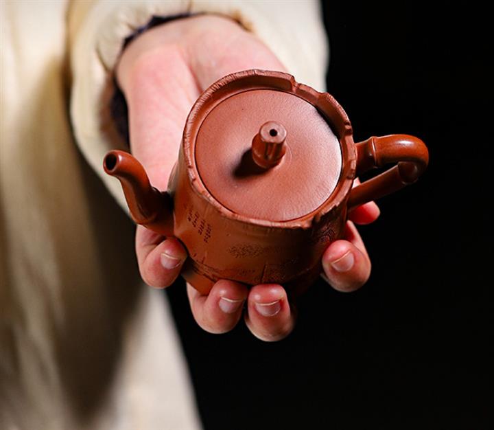 350cc原礦翡翠綠泥通身刻繪竹段茶壺POT9047