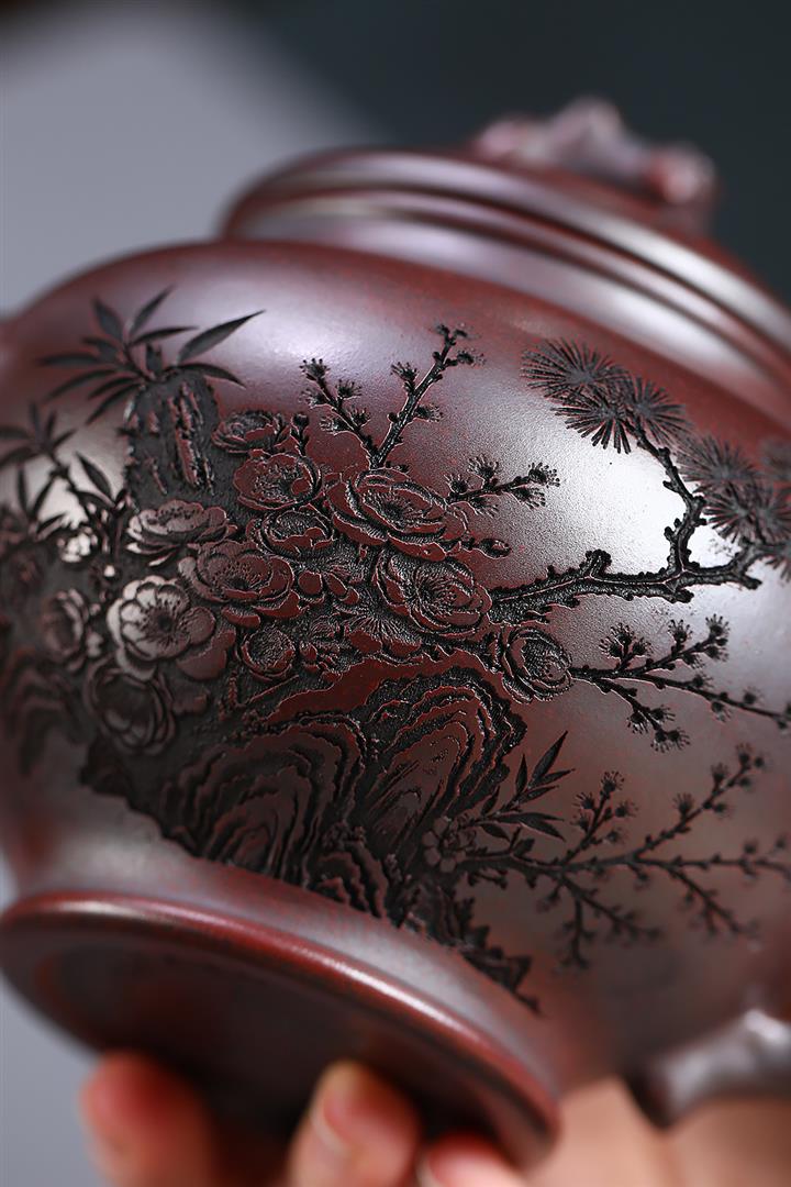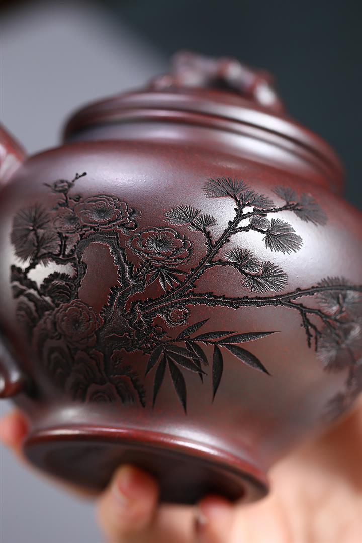 450cc原礦古烏泥歲寒三友報春泡茶壺POT9638