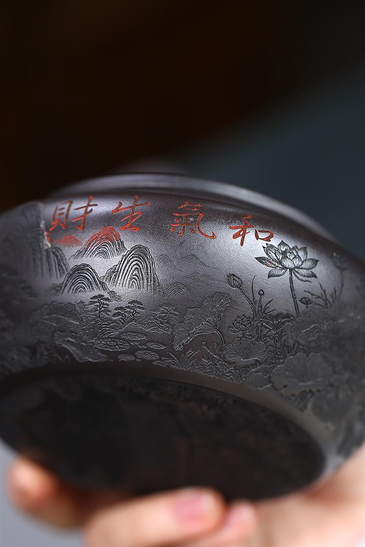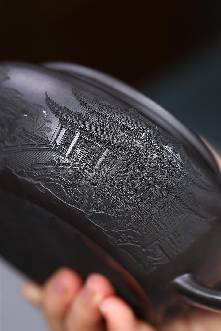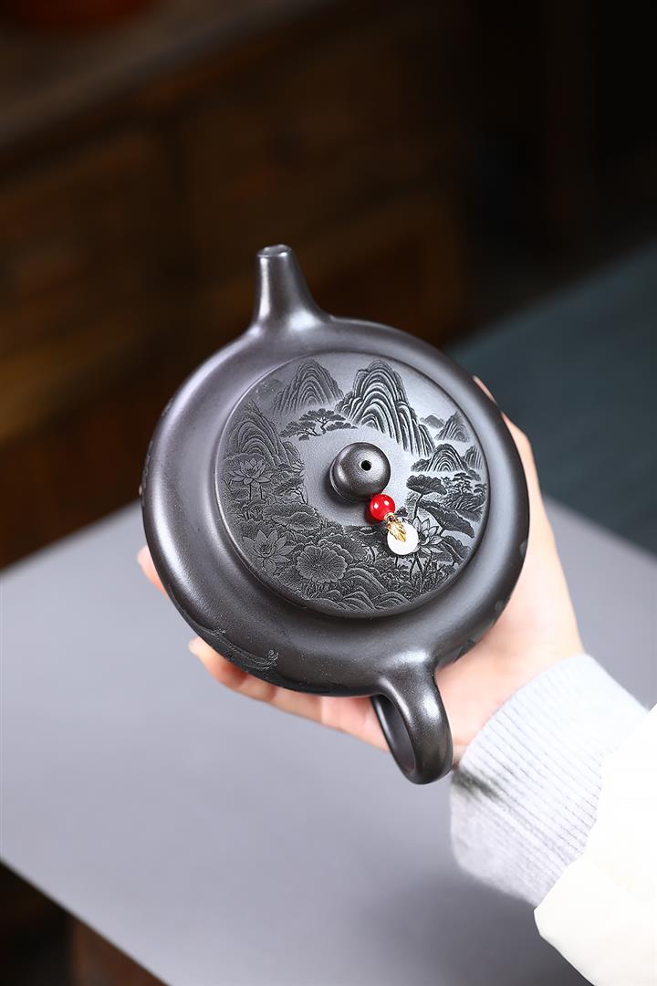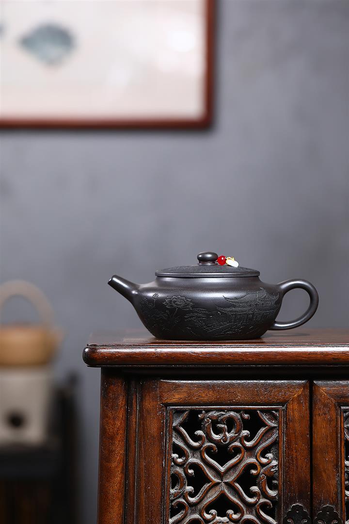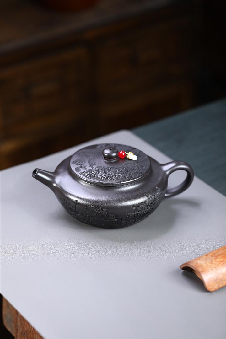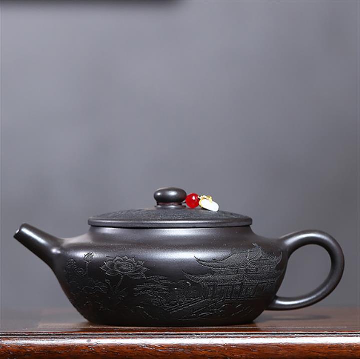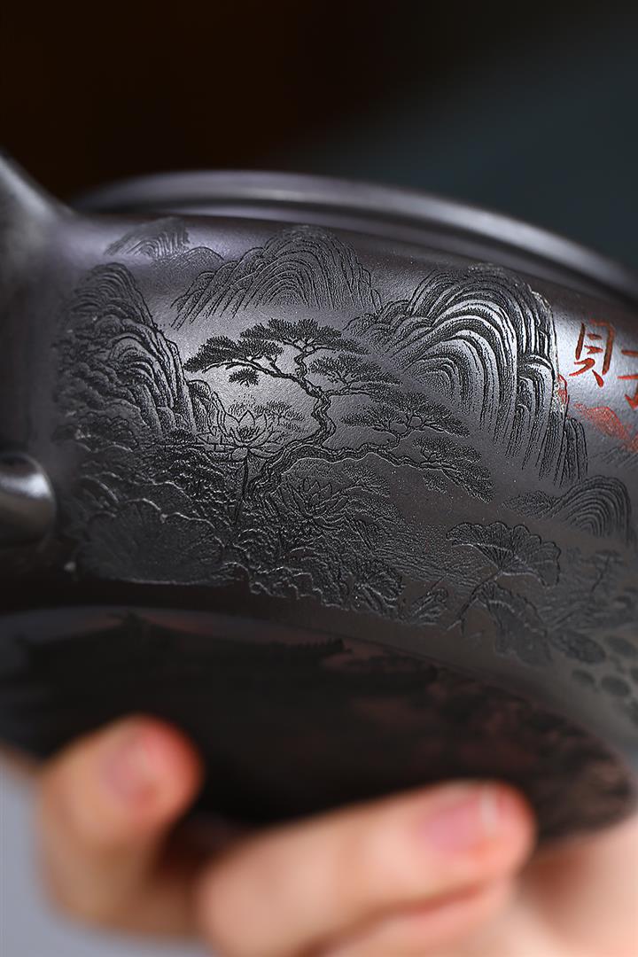 原礦龍血砂手工刻繪無欲則剛紫砂壺POT6530