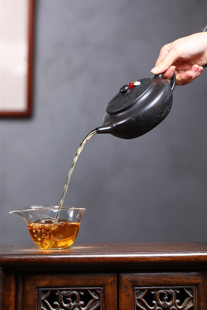 原礦黑金剛手工松鶴延年紫砂壺POT6528