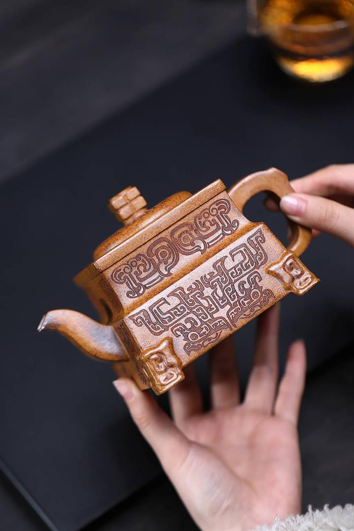 500cc龍骨金砂特高溫柴燒四方足鼎泡茶壺POT9646