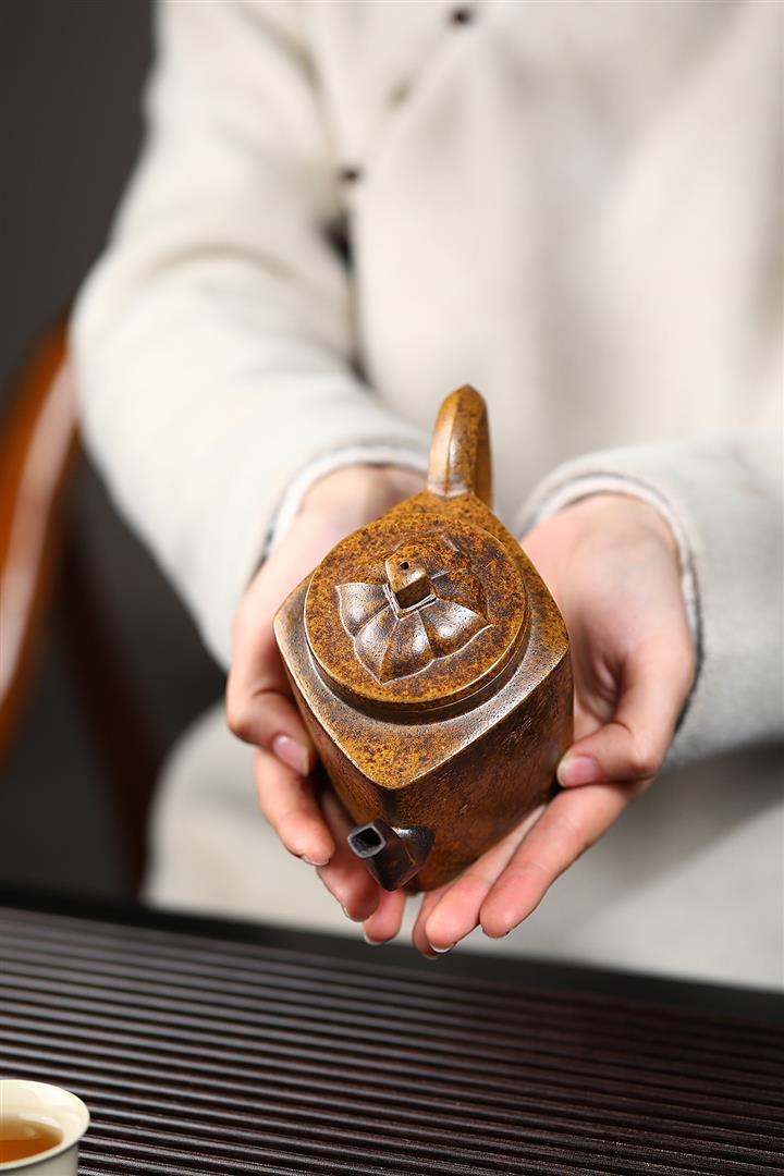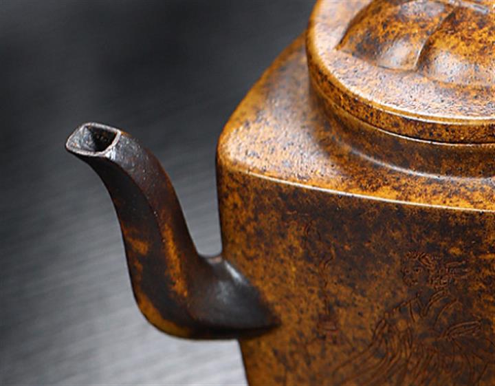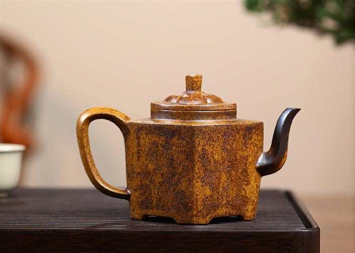 【泥料特點】砂土氣重,似淳實農民,日久使用,漸露鋒芒,養成變化,溫潤莊重。紫砂是壹種雙重氣孔結構的多孔性材質,氣孔微細,密度高。用紫砂壺沏茶,不失原味,且香不渙散,得茶之真香真味。紫砂使用越久,壺身色澤越發光亮照人,氣韻溫雅。紫砂壺長久使用器身會因撫摸擦拭,變得越發溫潤光澤。