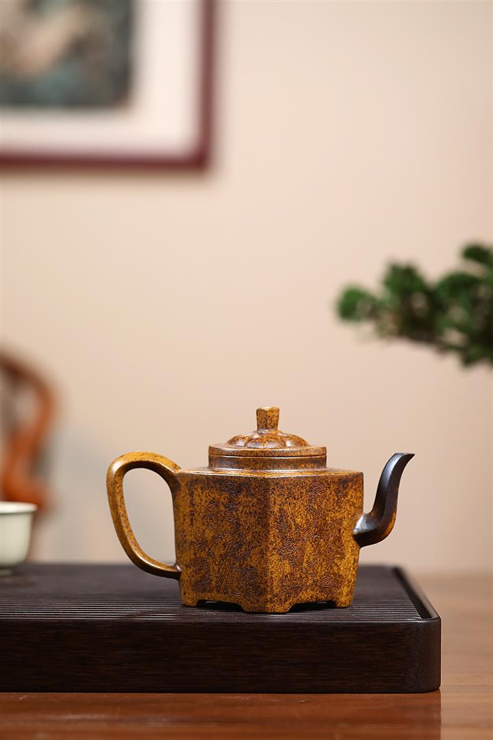 【作品介紹】此款壺形線條流暢,壺把,壺嘴,壺身壹氣呵成栩栩如生,是收藏把玩的好壺,泥料色澤古樸典雅,日久使用,漸露鋒芒,養成變化快,溫潤莊重,用其泡茶,使用的年代久,壺身就溫潤,泡出來的茶湯也就醇郁芳馨。