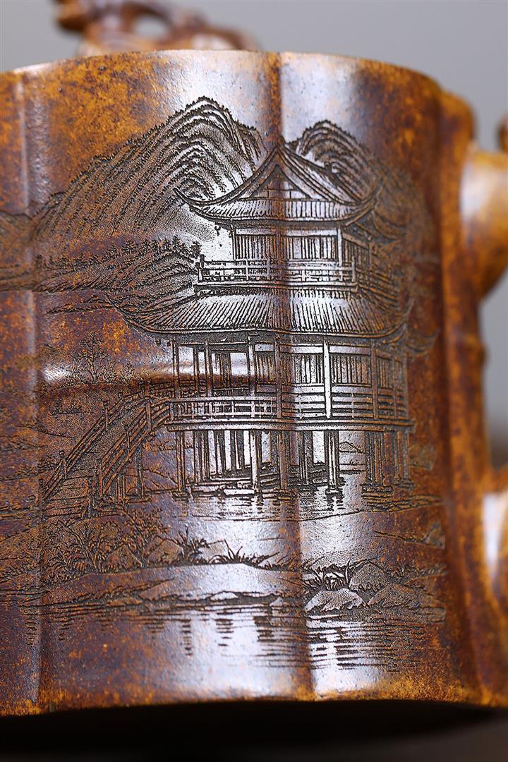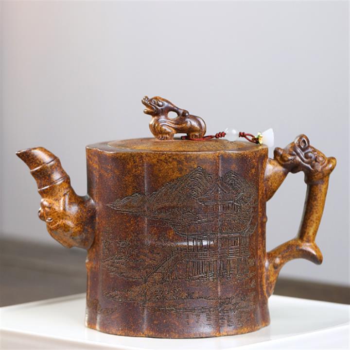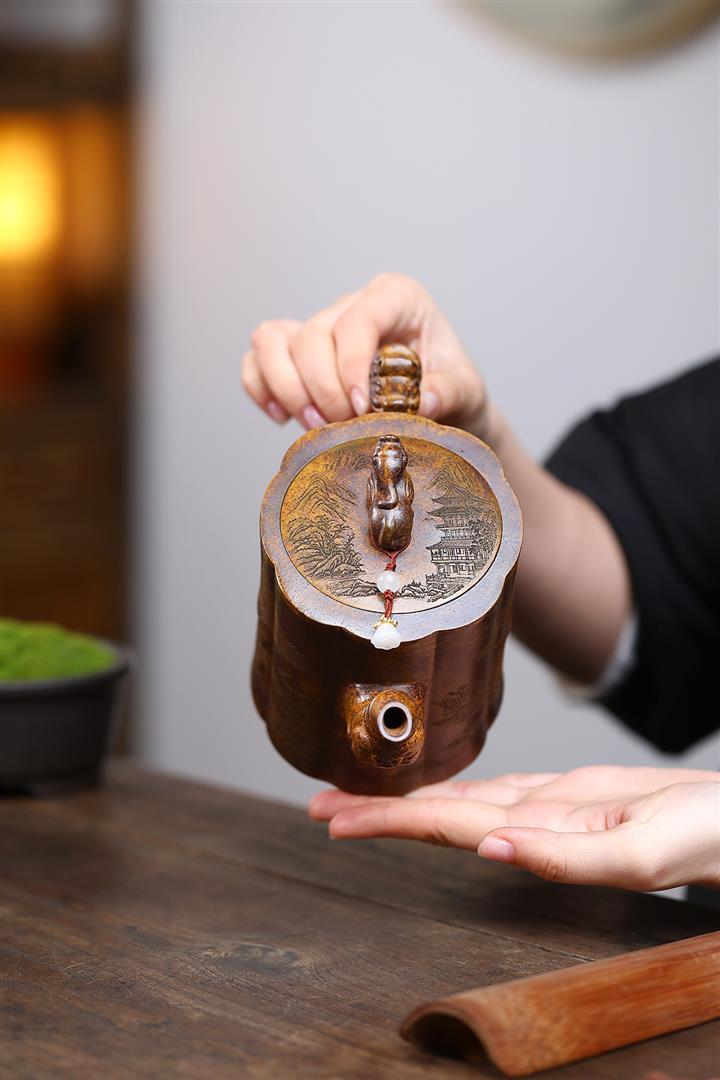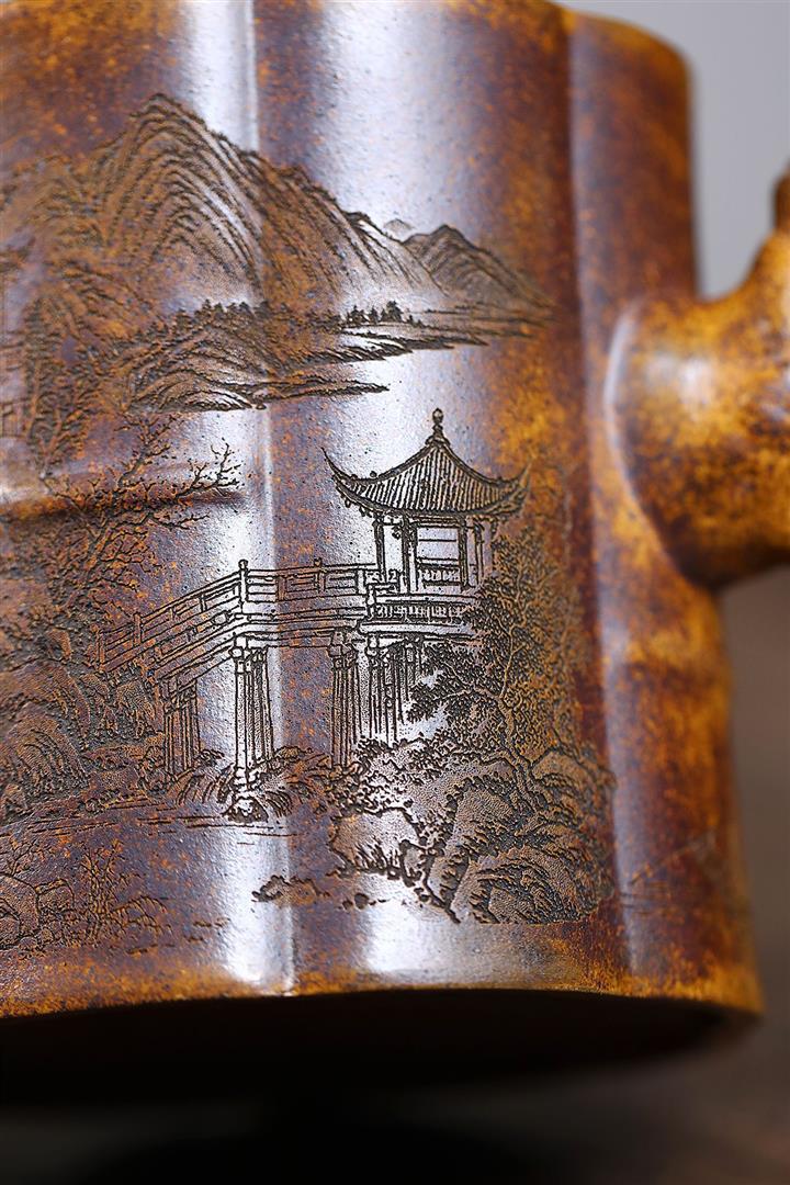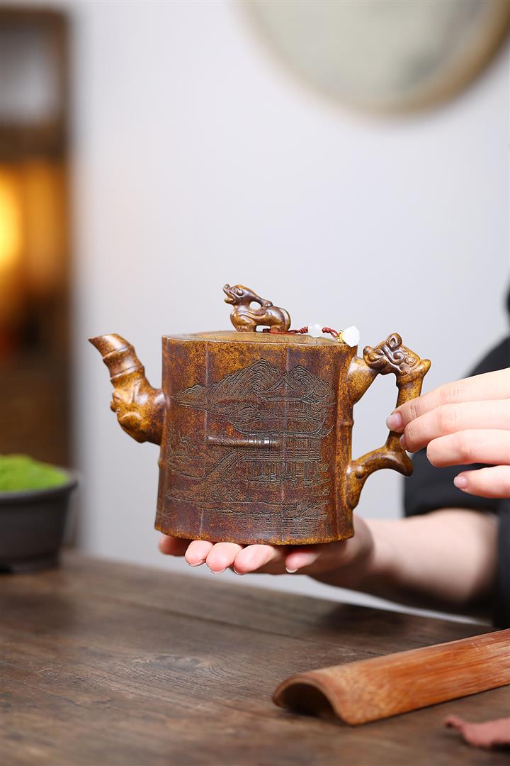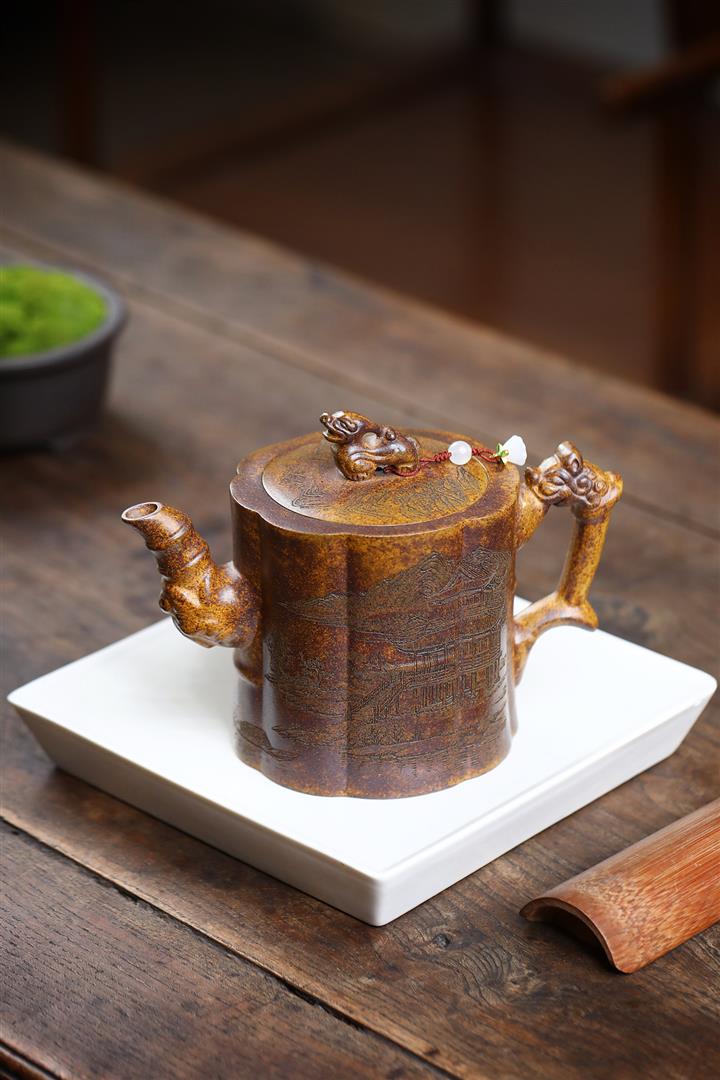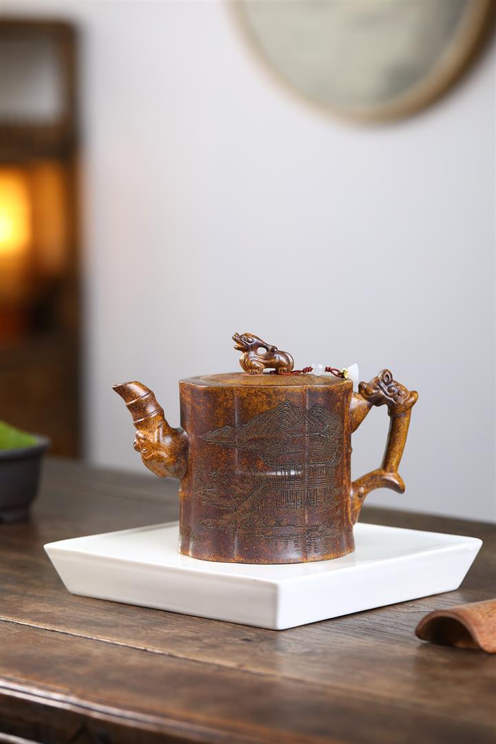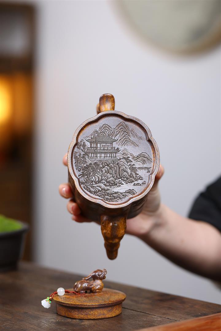 手工製原礦紫砂泥繪山水側把壺泡茶壺功夫茶具POT3915