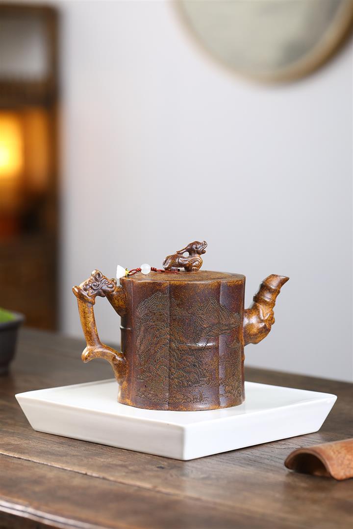 520cc原礦龍骨金砂特高溫龍鳳雲築泡茶壺POT9651