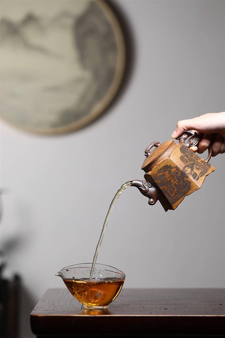 【泥料特點】砂土氣重,似淳實農民,日久使用,漸露鋒芒,養成變化,溫潤莊重。紫砂是壹種雙重氣孔結構的多孔性材質,氣孔微細,密度高。用紫砂壺沏茶,不失原味,且香不渙散,得茶之真香真味。紫砂使用越久,壺身色澤越發光亮照人,氣韻溫雅。紫砂壺長久使用器身會因撫摸擦拭,變得越發溫潤光澤。