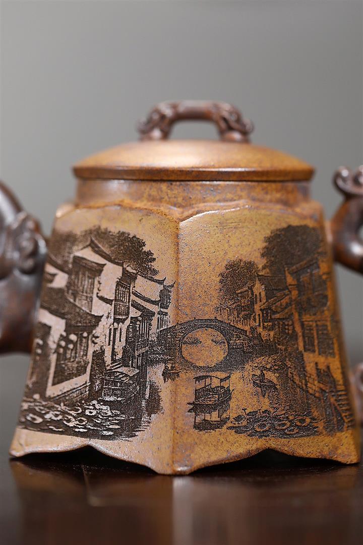原礦蟹殼青筋紋抽角漢瓦紫砂壺POT4457