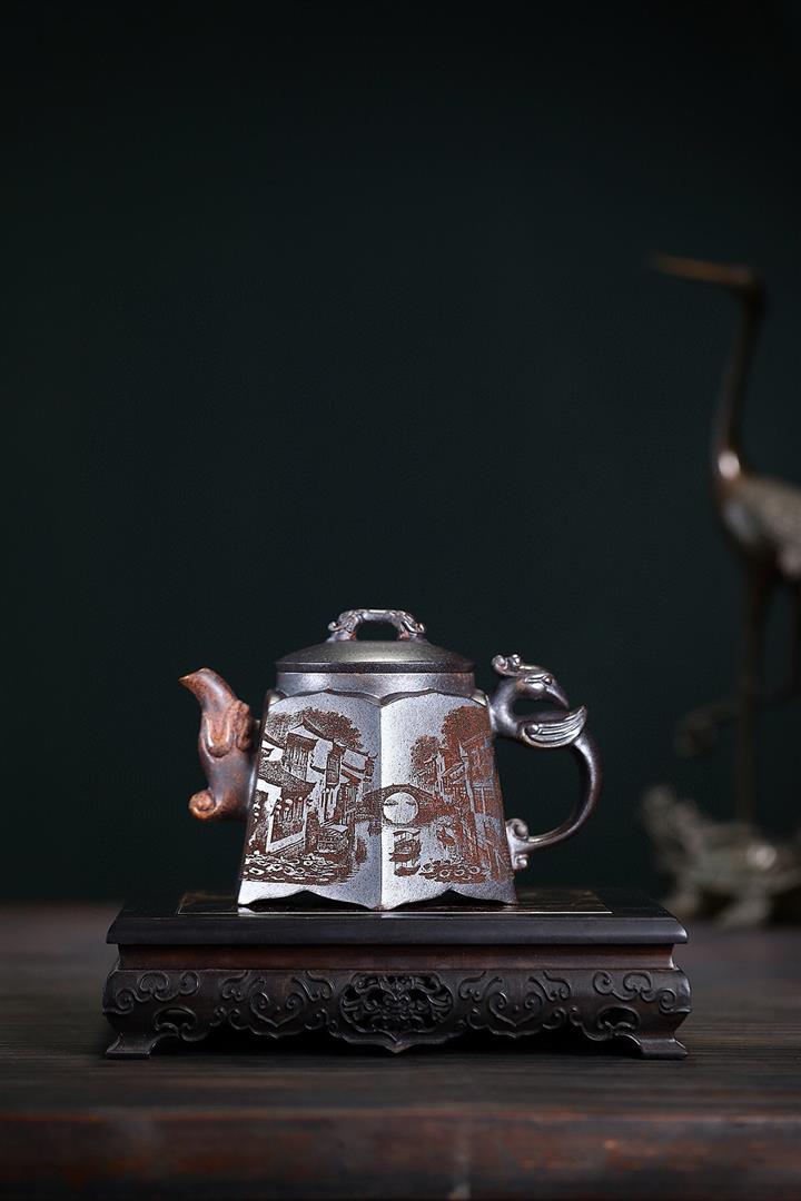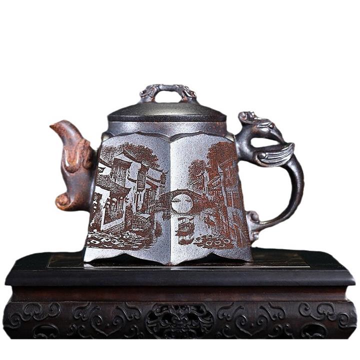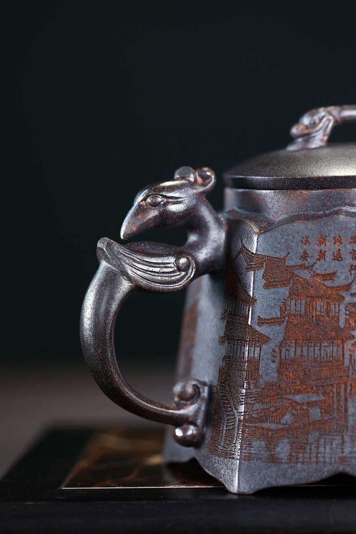 420cc龍窯柴燒鐵紅古烏泥龍鳳呈祥泡茶壺POT9662
