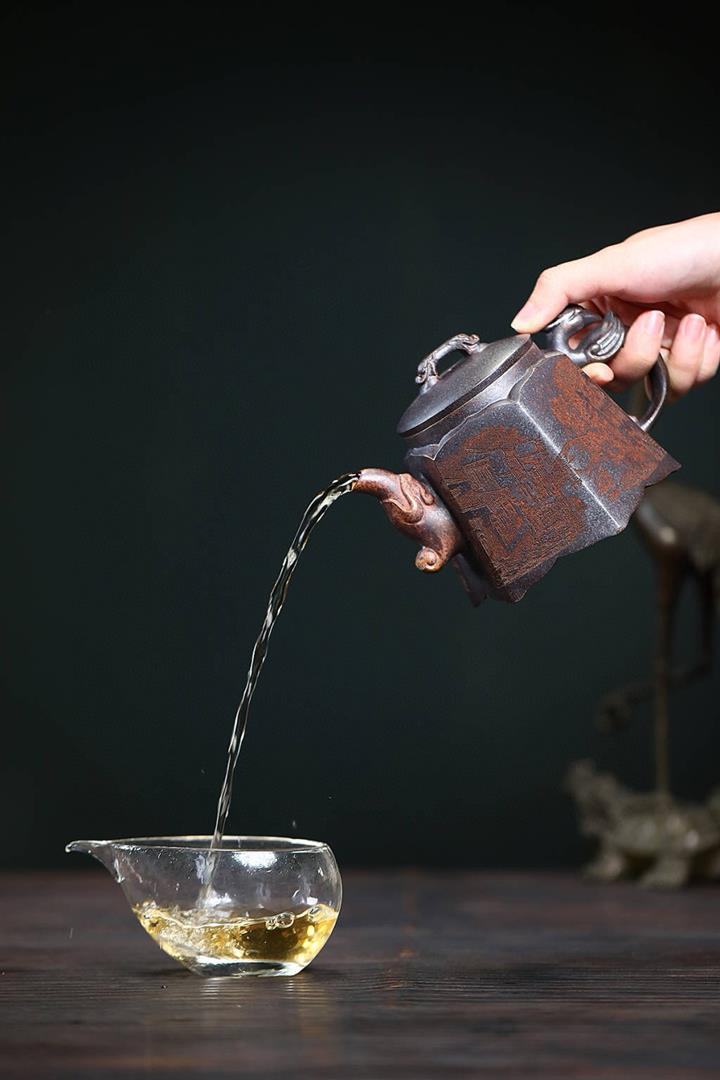 【泥料特點】砂土氣重,似淳實農民,日久使用,漸露鋒芒,養成變化,溫潤莊重。紫砂是壹種雙重氣孔結構的多孔性材質,氣孔微細,密度高。用紫砂壺沏茶,不失原味,且香不渙散,得茶之真香真味。紫砂使用越久,壺身色澤越發光亮照人,氣韻溫雅。紫砂壺長久使用器身會因撫摸擦拭,變得越發溫潤光澤。
