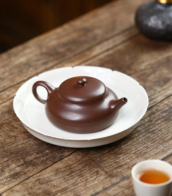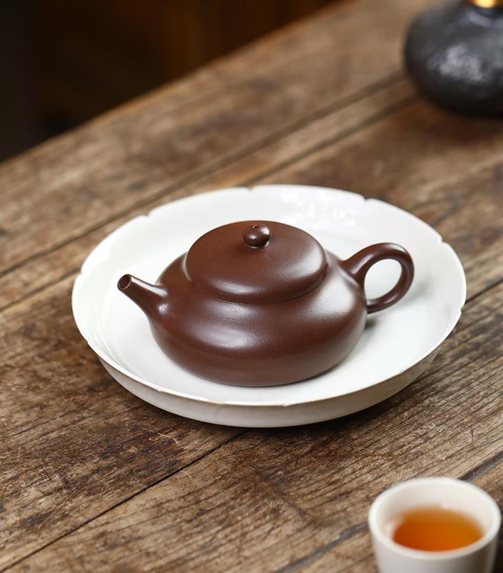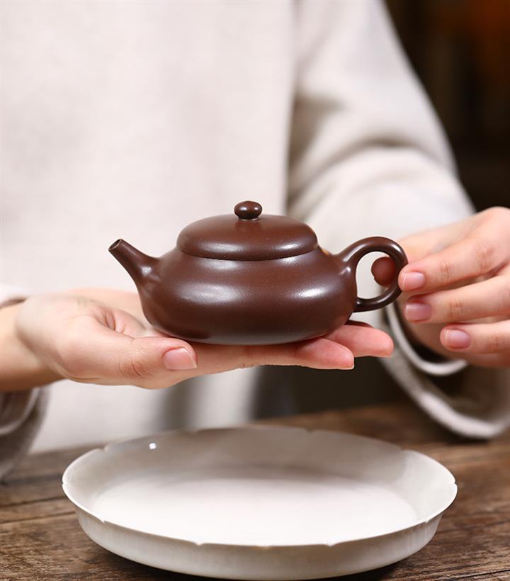 【泥料特點】砂土氣重,似淳實農民,日久使用,漸露鋒芒,養成變化,溫潤莊重。紫砂是壹種雙重氣孔結構的多孔性材質,氣孔微細,密度高。用紫砂壺沏茶,不失原味,且香不渙散,得茶之真香真味。紫砂使用越久,壺身色澤越發光亮照人,氣韻溫雅。紫砂壺長久使用器身會因撫摸擦拭,變得越發溫潤光澤。