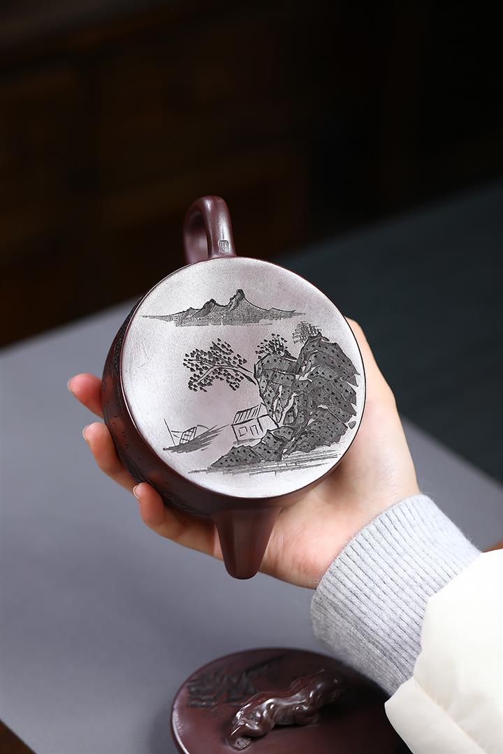 手工紫砂壺黃金段刻繪靜心茶壺家用手泡茶具禮品pot3816