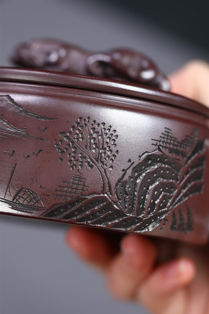 【泥料特點】砂土氣重,似淳實農民,日久使用,漸露鋒芒,養成變化,溫潤莊重。紫砂是壹種雙重氣孔結構的多孔性材質,氣孔微細,密度高。用紫砂壺沏茶,不失原味,且香不渙散,得茶之真香真味。紫砂使用越久,壺身色澤越發光亮照人,氣韻溫雅。紫砂壺長久使用器身會因撫摸擦拭,變得越發溫潤光澤。