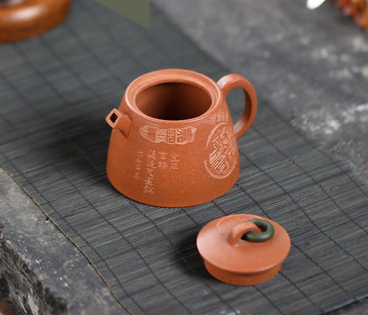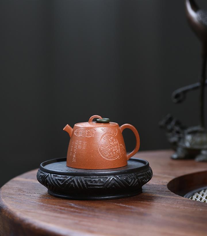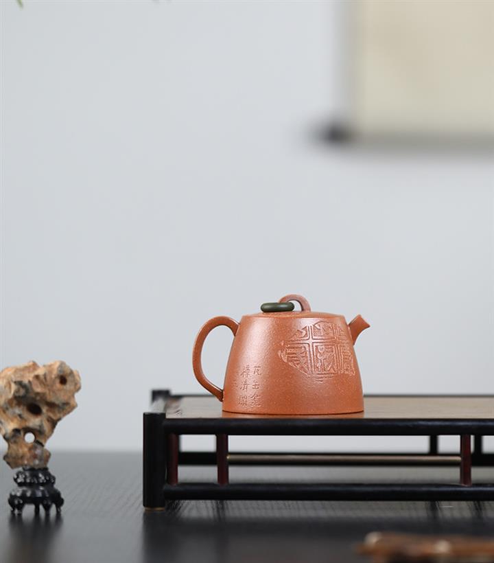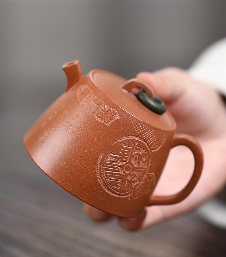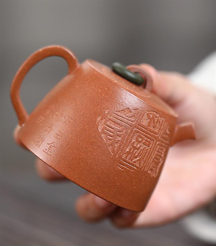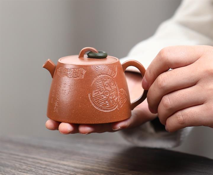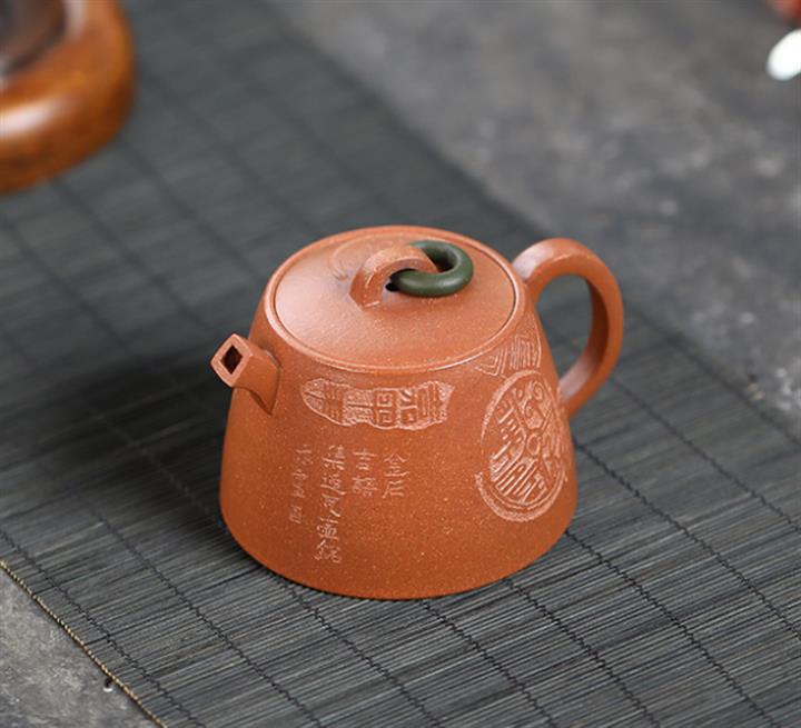 180cc原礦鐵血紅砂刻字寒江泡茶壺POT9481