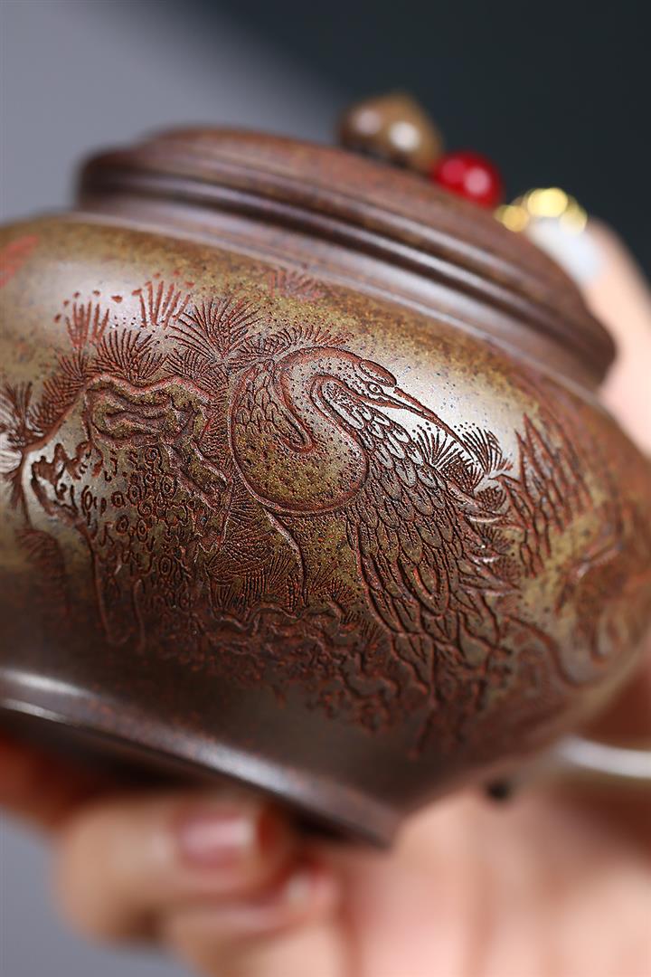 240cc原礦雲霧沈香泥松鶴笑櫻泡茶壺POT9697