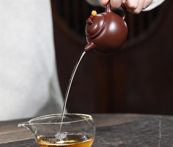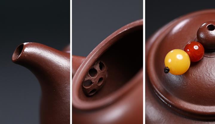 【泥料特點】砂土氣重,似淳實農民,日久使用,漸露鋒芒,養成變化,溫潤莊重。紫砂是壹種雙重氣孔結構的多孔性材質,氣孔微細,密度高。用紫砂壺沏茶,不失原味,且香不渙散,得茶之真香真味。紫砂使用越久,壺身色澤越發光亮照人,氣韻溫雅。紫砂壺長久使用器身會因撫摸擦拭,變得越發溫潤光澤。