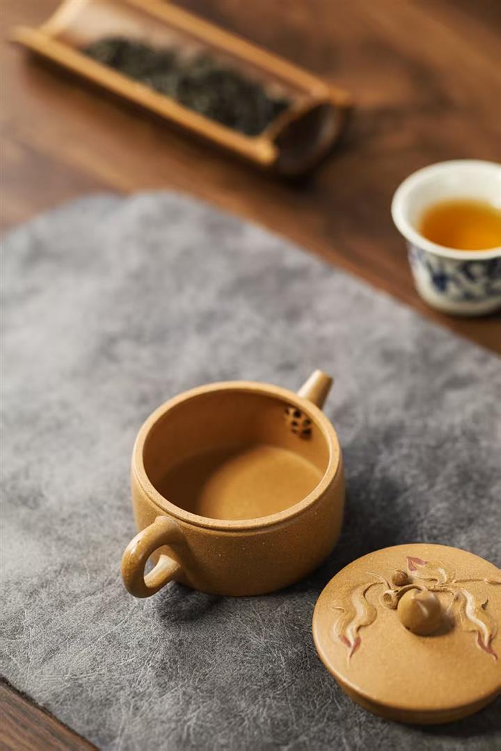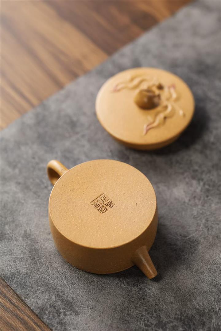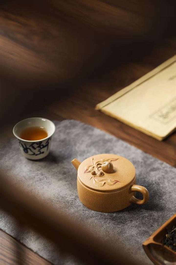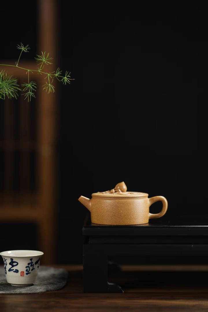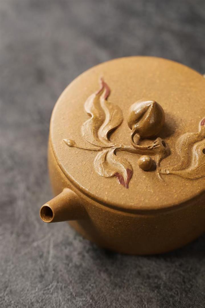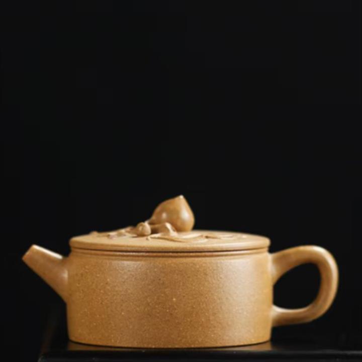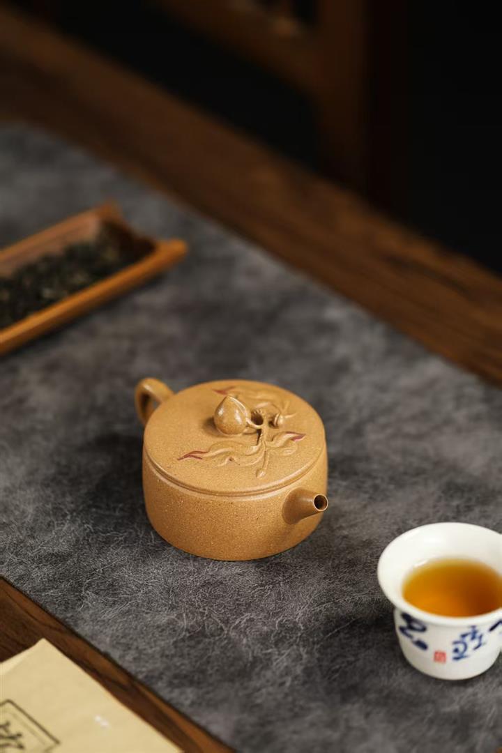 90cc原礦黃降坡泥壽桃漢瓦小品茶壺POT9762