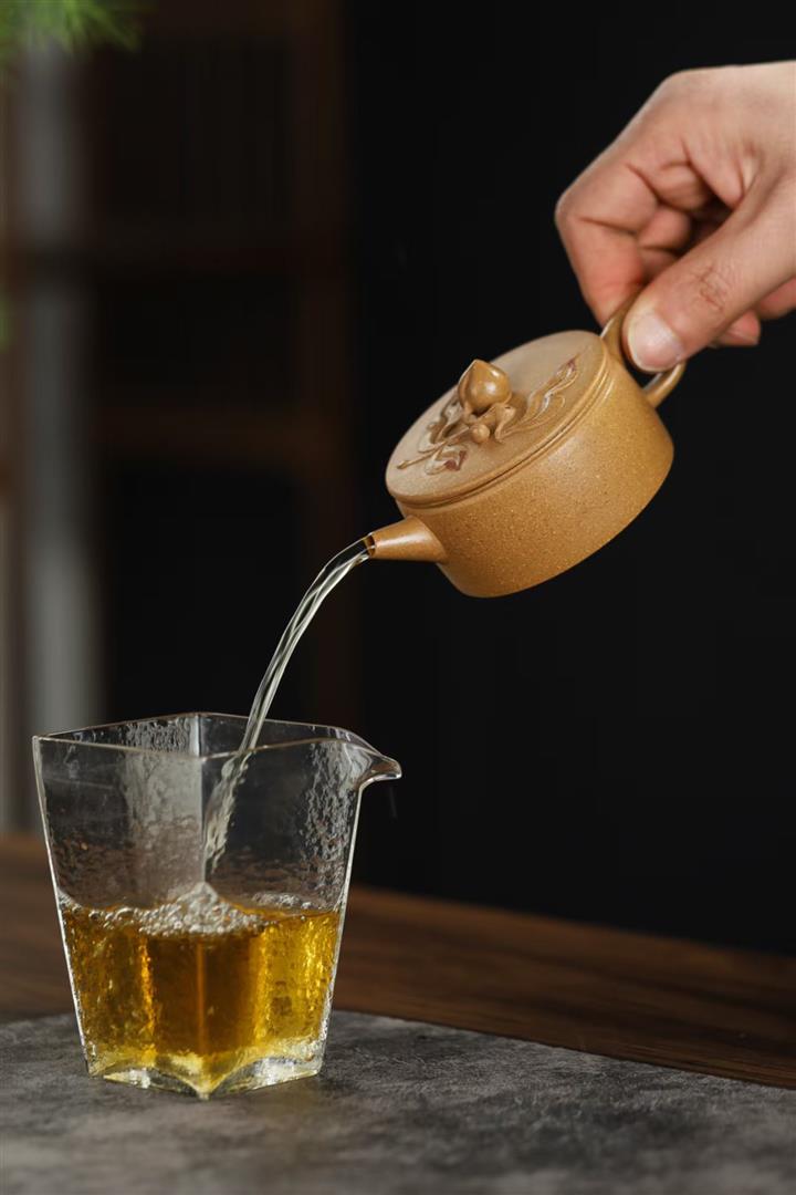 【泥料特點】砂土氣重,似淳實農民,日久使用,漸露鋒芒,養成變化,溫潤莊重。紫砂是壹種雙重氣孔結構的多孔性材質,氣孔微細,密度高。用紫砂壺沏茶,不失原味,且香不渙散,得茶之真香真味。紫砂使用越久,壺身色澤越發光亮照人,氣韻溫雅。紫砂壺長久使用器身會因撫摸擦拭,變得越發溫潤光澤。