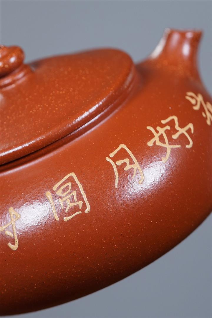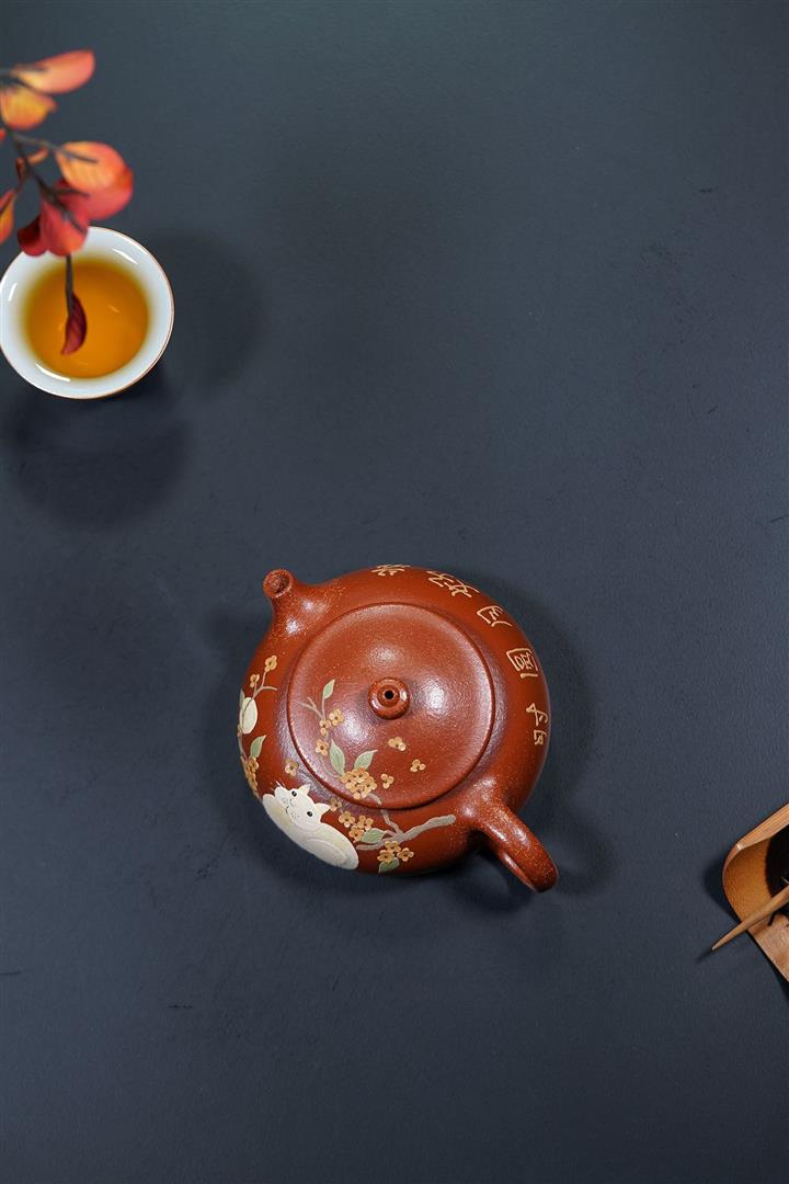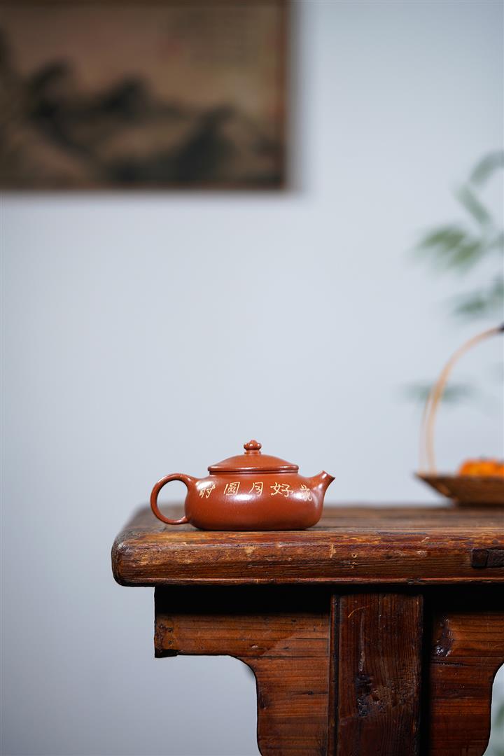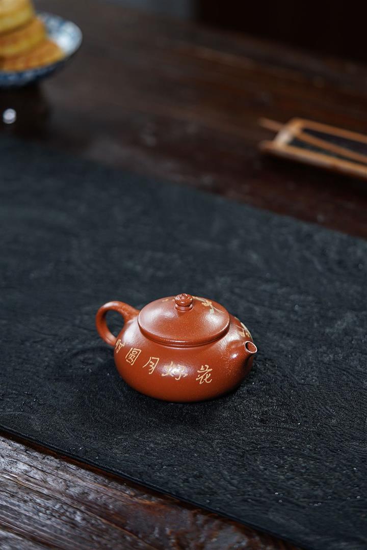 原礦大紅袍手工刻繪座有蘭言仿古紫砂壺250cc pot3460