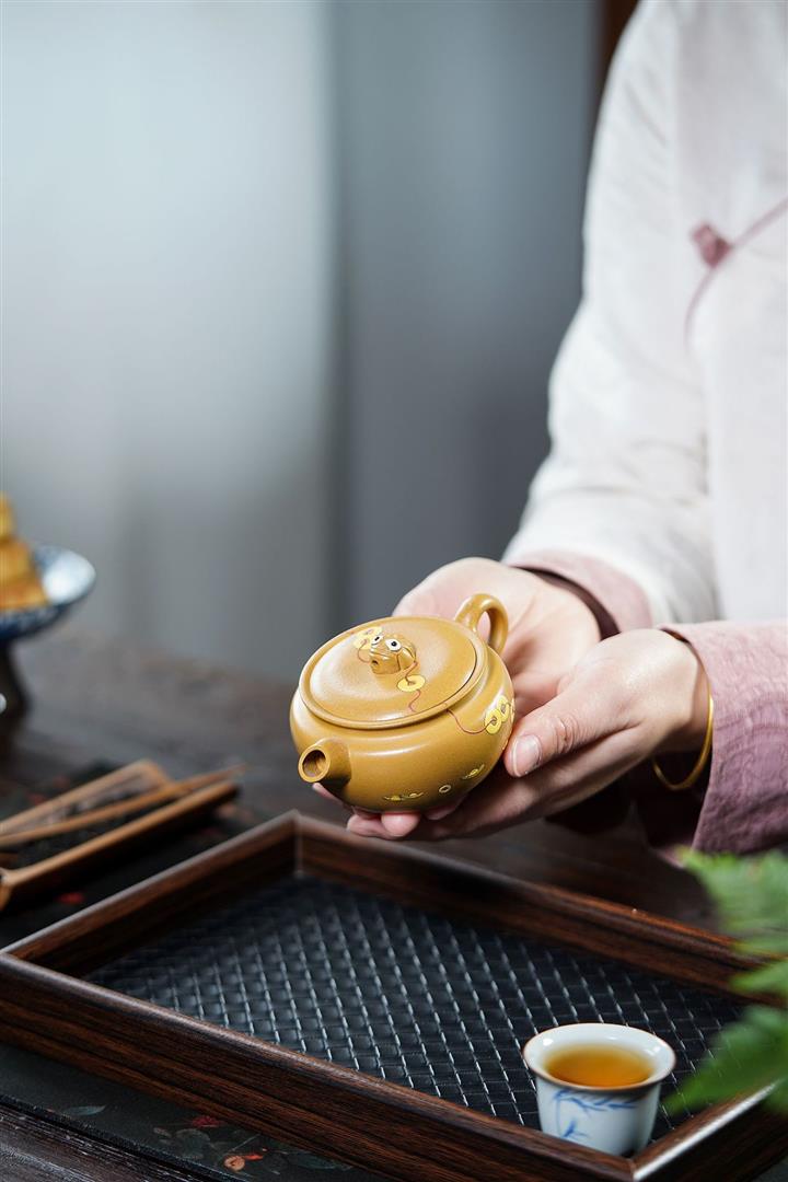 【泥料特點】砂土氣重,似淳實農民,日久使用,漸露鋒芒,養成變化,溫潤莊重。紫砂是壹種雙重氣孔結構的多孔性材質,氣孔微細,密度高。用紫砂壺沏茶,不失原味,且香不渙散,得茶之真香真味。紫砂使用越久,壺身色澤越發光亮照人,氣韻溫雅。紫砂壺長久使用器身會因撫摸擦拭,變得越發溫潤光澤。
