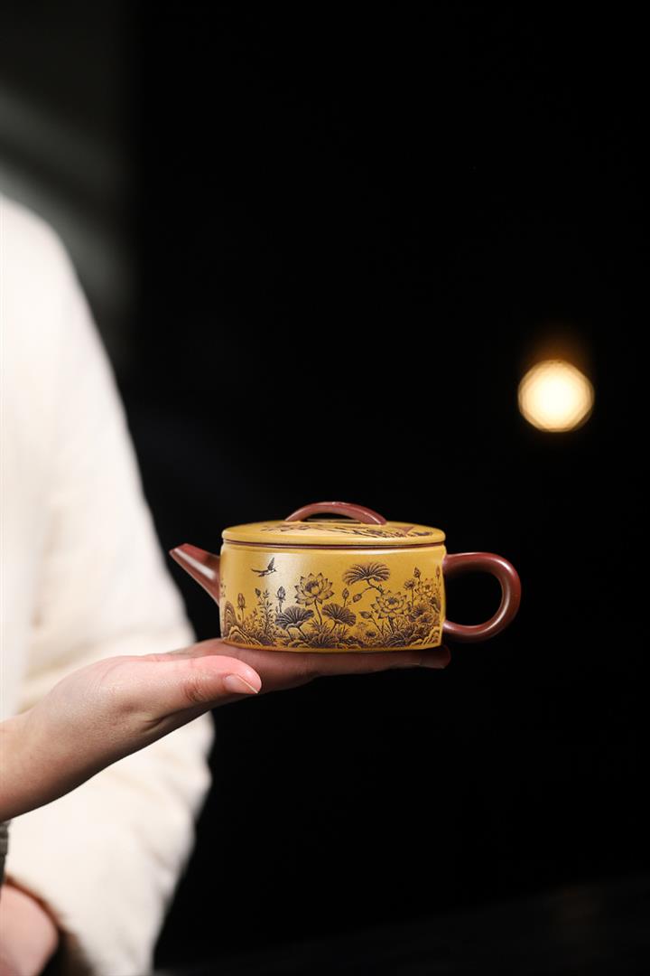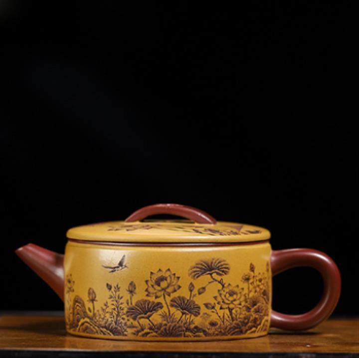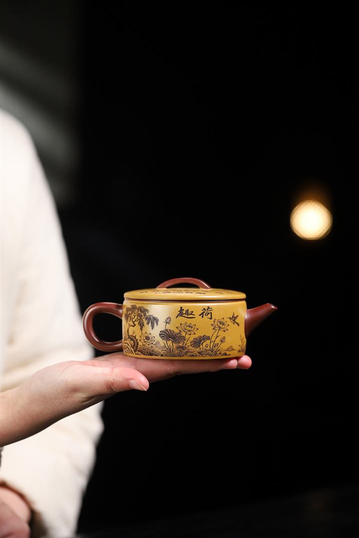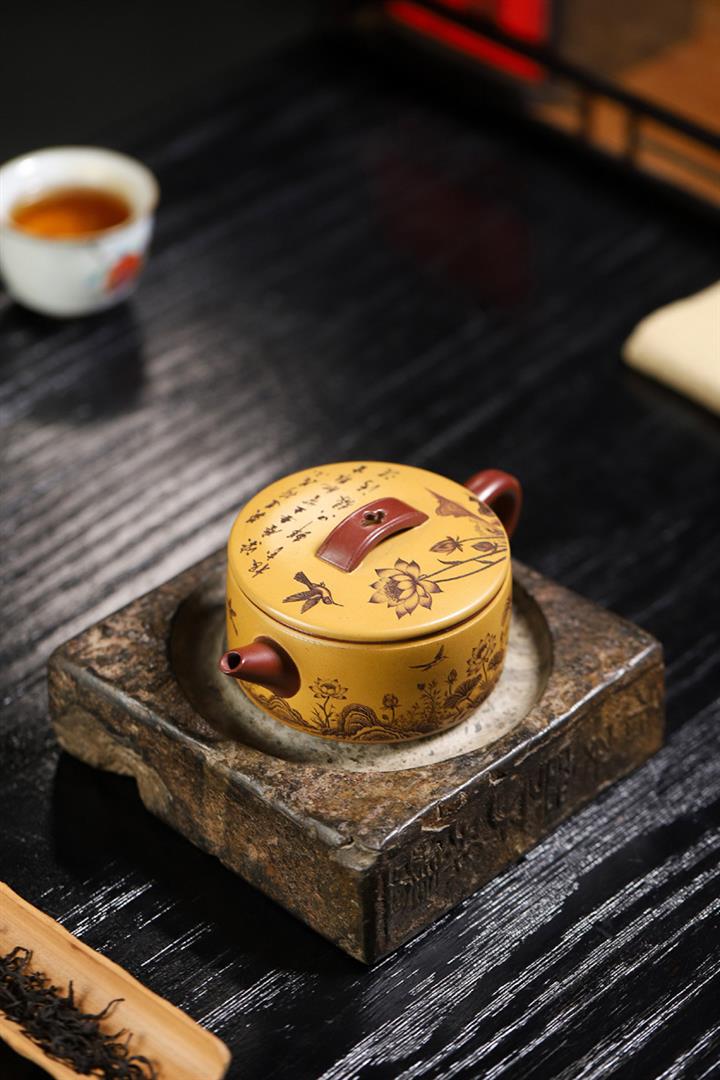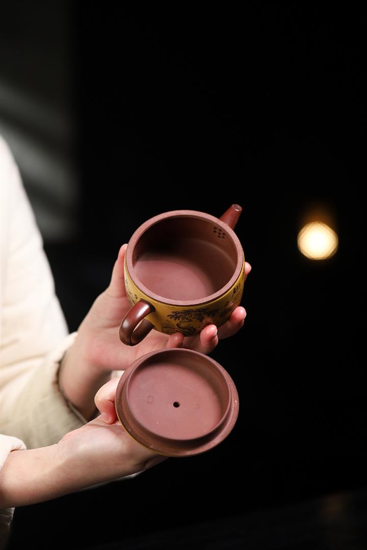 180cc原礦龍血砂/黃金朱泥荷趣漢瓦泡茶壺POT9806