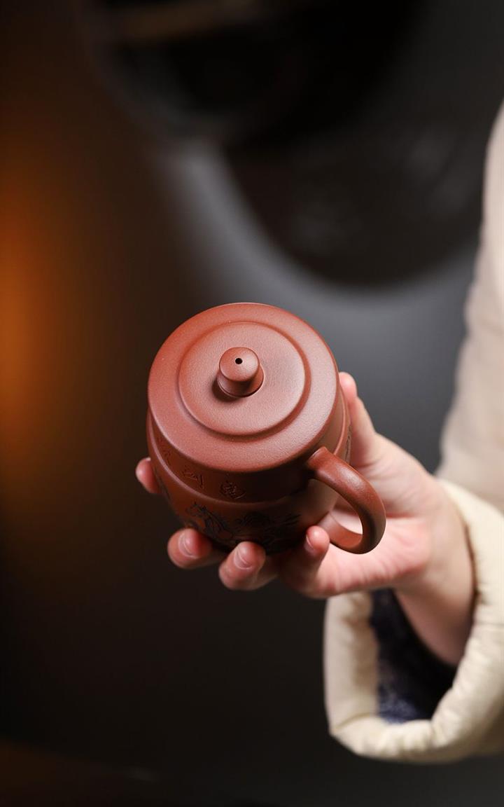 【泥料特點】砂土氣重,似淳實農民,日久使用,漸露鋒芒,養成變化,溫潤莊重。紫砂是壹種雙重氣孔結構的多孔性材質,氣孔微細,密度高。用紫砂壺沏茶,不失原味,且香不渙散,得茶之真香真味。紫砂使用越久,壺身色澤越發光亮照人,氣韻溫雅。紫砂壺長久使用器身會因撫摸擦拭,變得越發溫潤光澤。