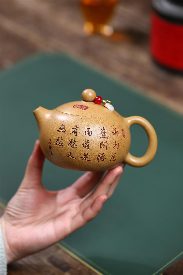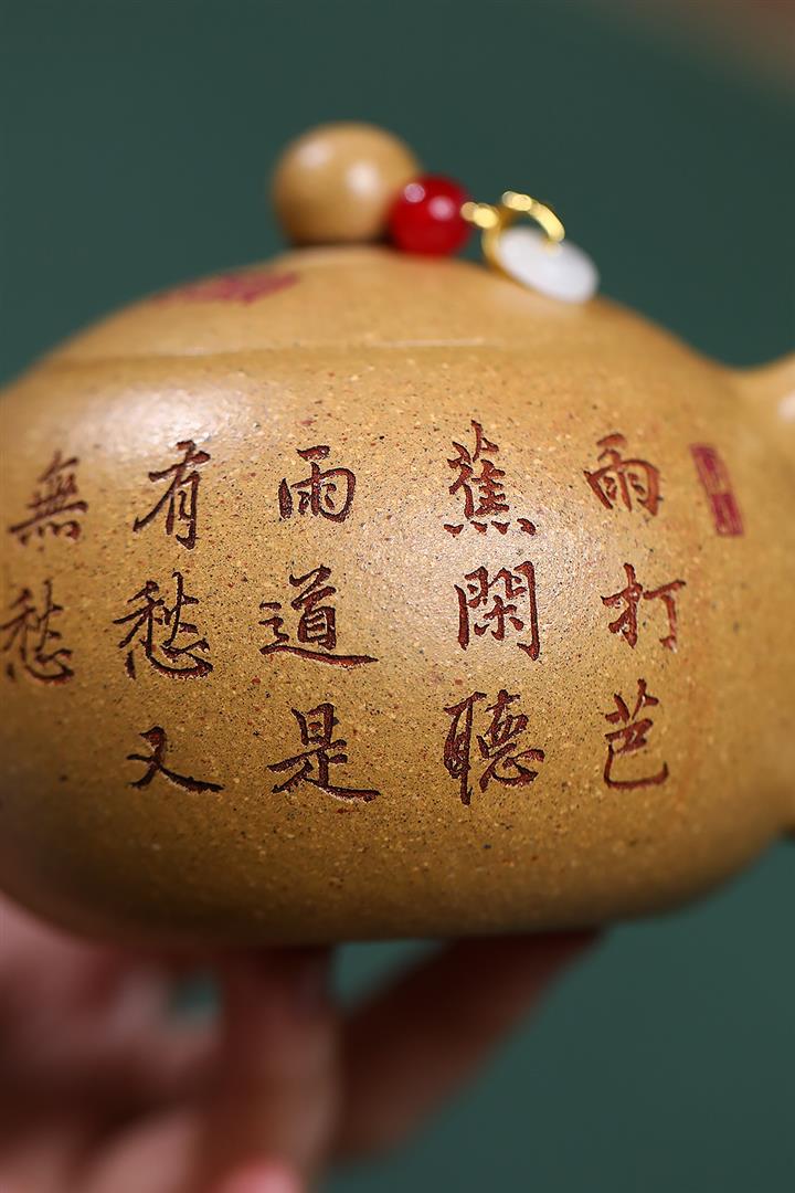 【作品介紹】此款壺形線條流暢,壺把,壺嘴,壺身壹氣呵成栩栩如生,是收藏把玩的好壺,泥料色澤古樸典雅,日久使用,漸露鋒芒,養成變化快,溫潤莊重,用其泡茶,使用的年代久,壺身就溫潤,泡出來的茶湯也就醇郁芳馨。