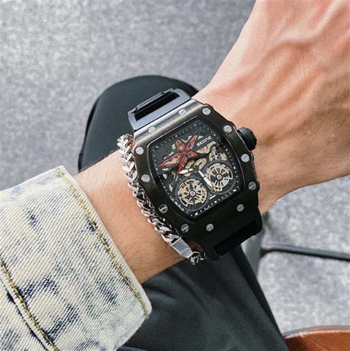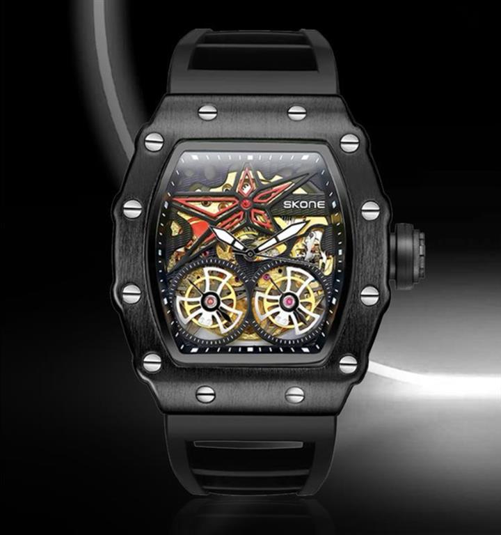 鏤空酒桶型夜光防水男士全自動機械表wat1946
