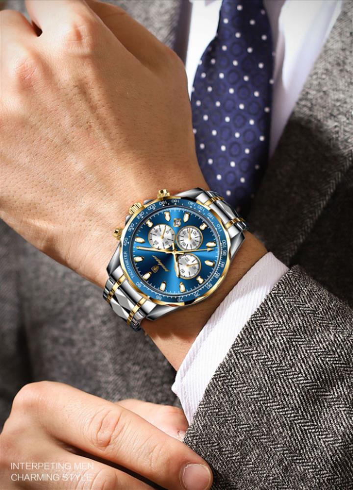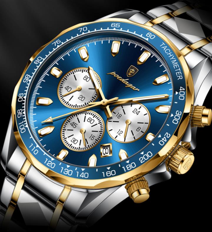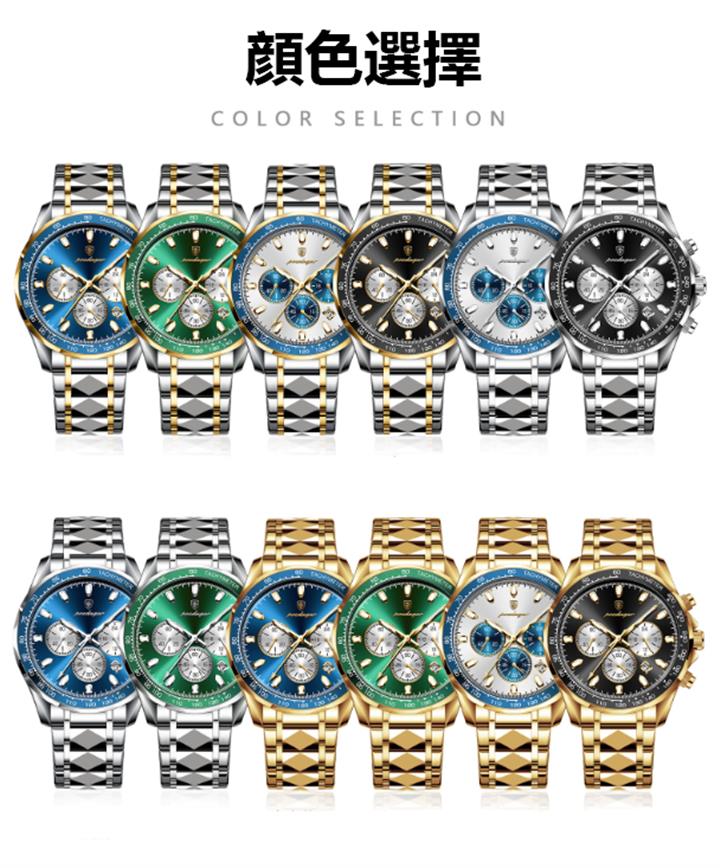 高檔三眼六針多功能月相鋼帶表Wat2042