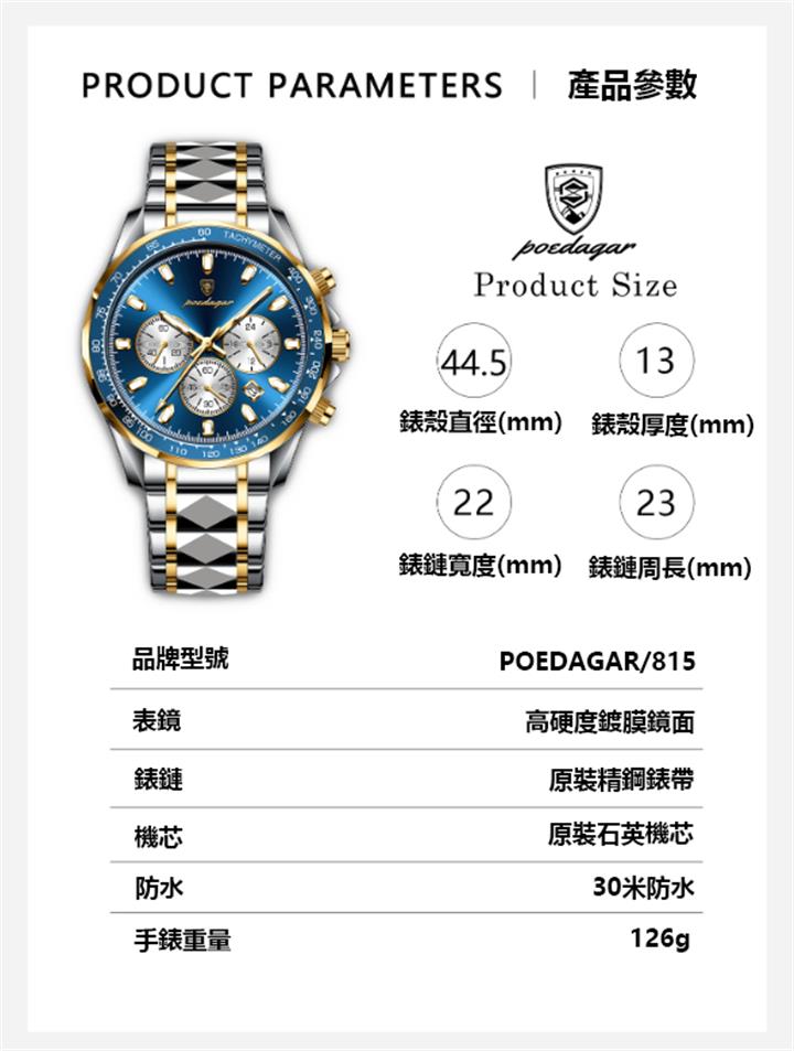 新款石英薄款雙歷防水男表wat2043