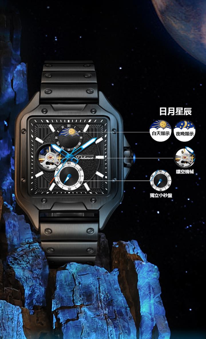 全自動鏤空防水鑲鉆機械男腕表Wat2129