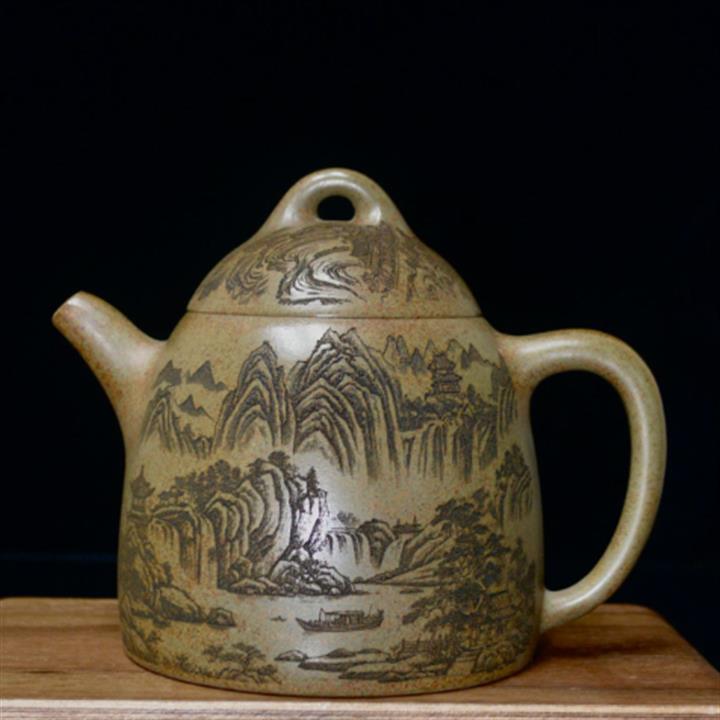 340cc原礦紫泥刻繪山水仿古泡茶壺POT8416