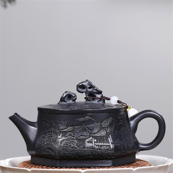 210cc原礦玄鐵石黃太湖石漢瓦泡茶壺POT9602