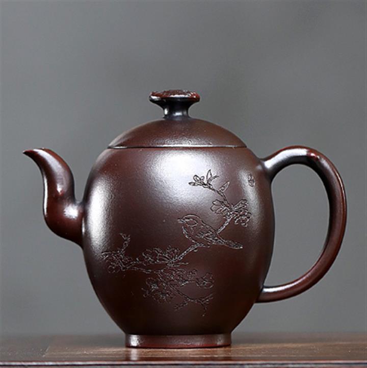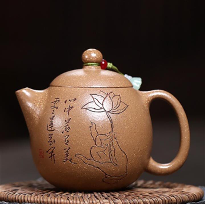 原礦龍血砂手工刻福字百福子冶石瓢紫砂壺260cc pot3652
