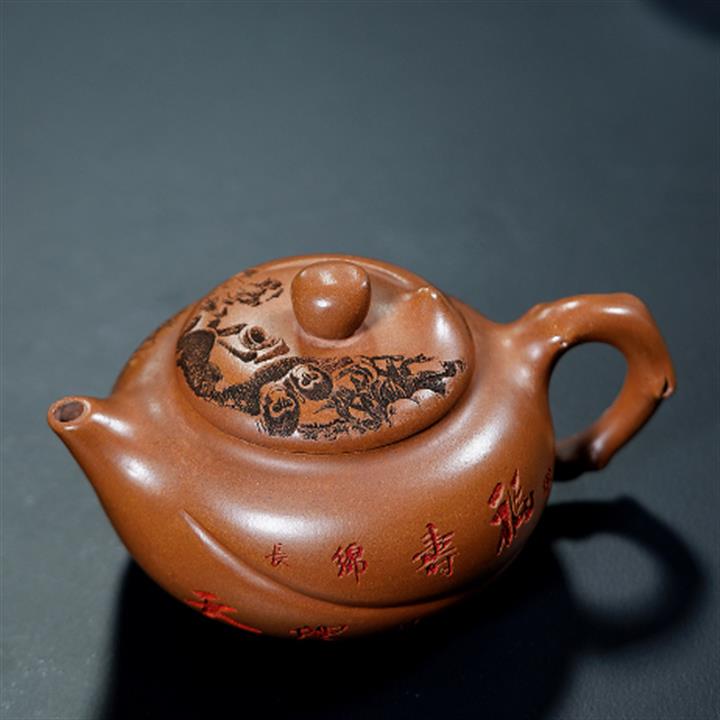 300cc原礦黃金段泥/綠泥多福多子茶壺POT8803