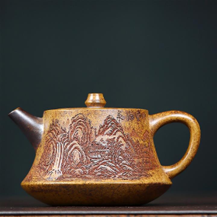200cc原礦高溫柴燒龍骨金砂山水礎柱茶壺POT9097