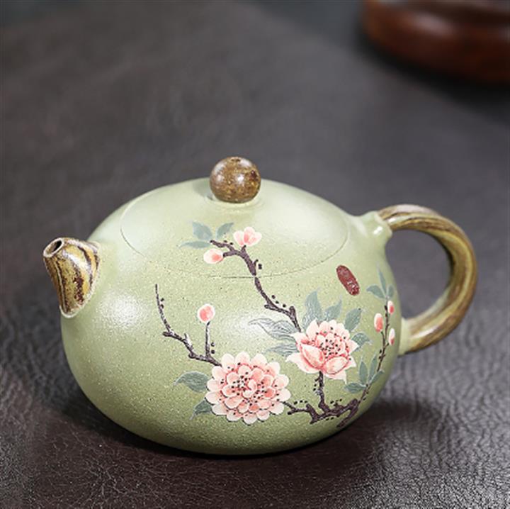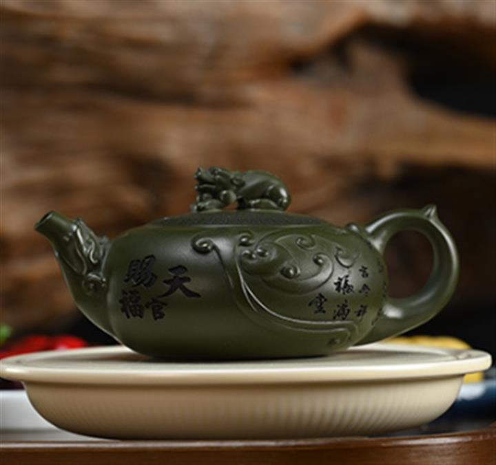 210cc原礦綠泥百福納財刻繪茶壺POT8363