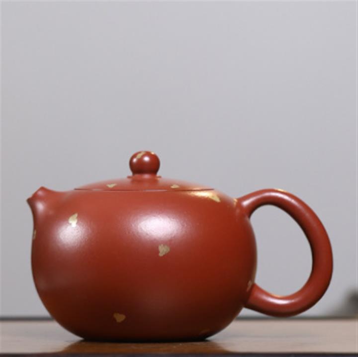 160cc原礦紫泥壹壺兩杯描金扁柿茶壺POT9282
