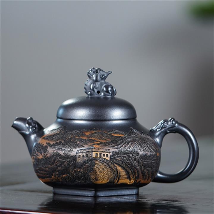 原礦本山綠泥龍鳳呈祥紫砂壺POT4895