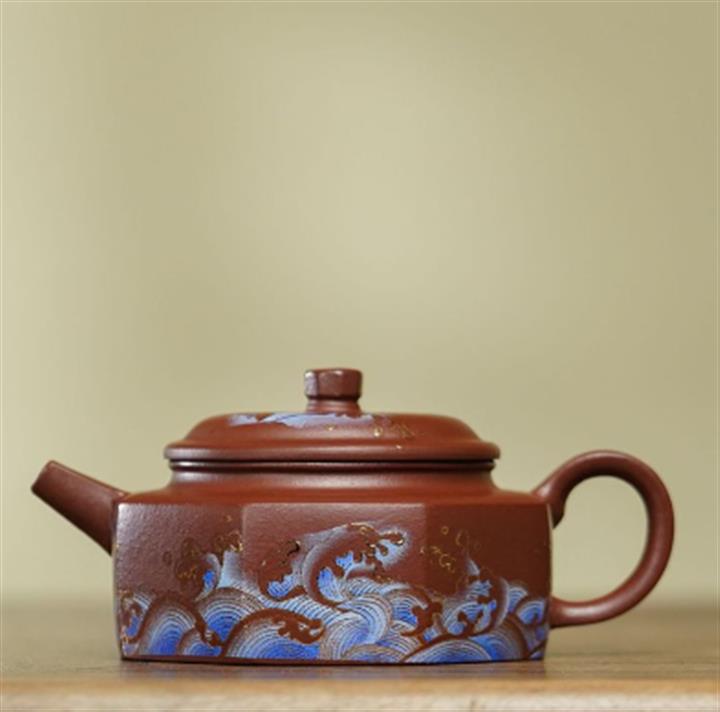 240cc原礦紫泥琺瑯彩八方扁德鐘茶壺POT8867
