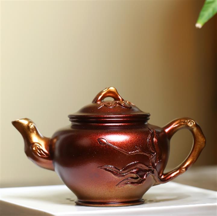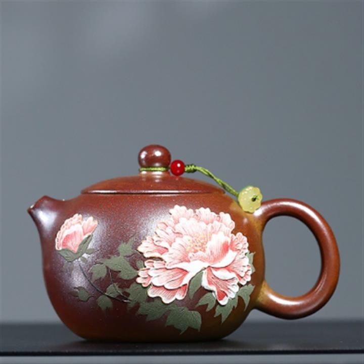 250cc原礦黃金段泥火焰燒焰生牡丹茶壺POT8845