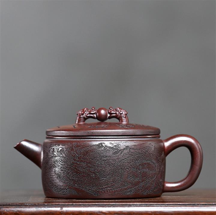 250cc原礦鐵血紅砂雙龍戲珠漢瓦茶壺POT8148