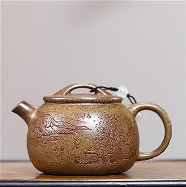 精金黃老段泥太湖竹韻紫砂壺POT5733