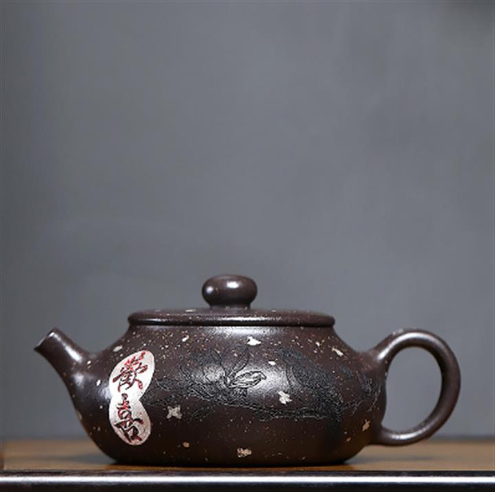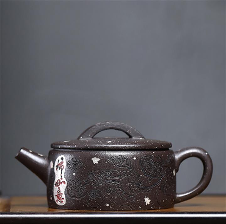 150cc原礦描銀鋪砂雪花紫泥柿柿如意漢瓦茶壺POT9041