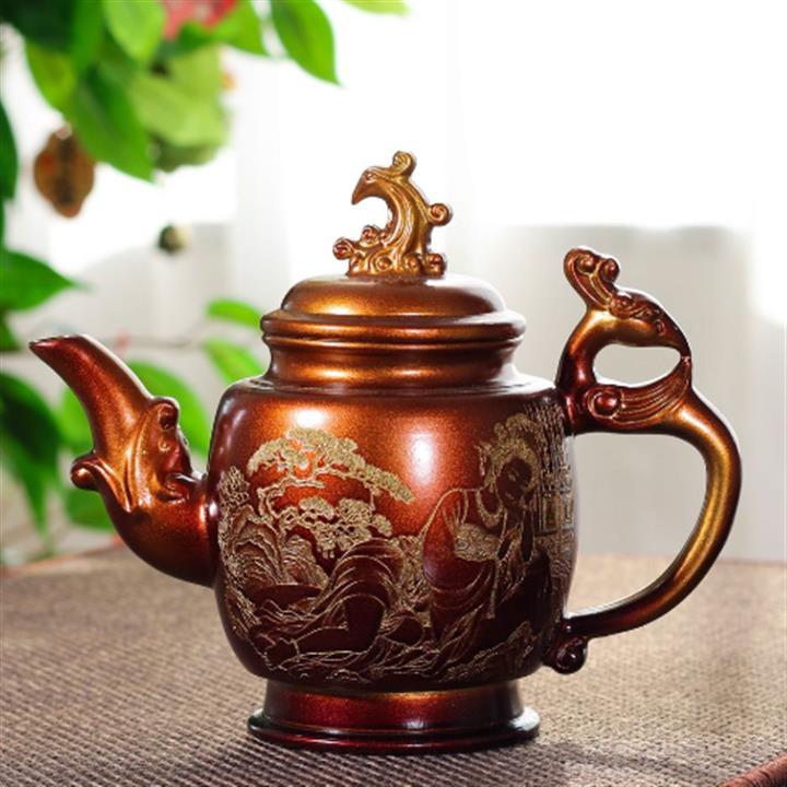 650cc原礦貝殼燒段泥滿刻龍鳳呈祥茶壺POT9046