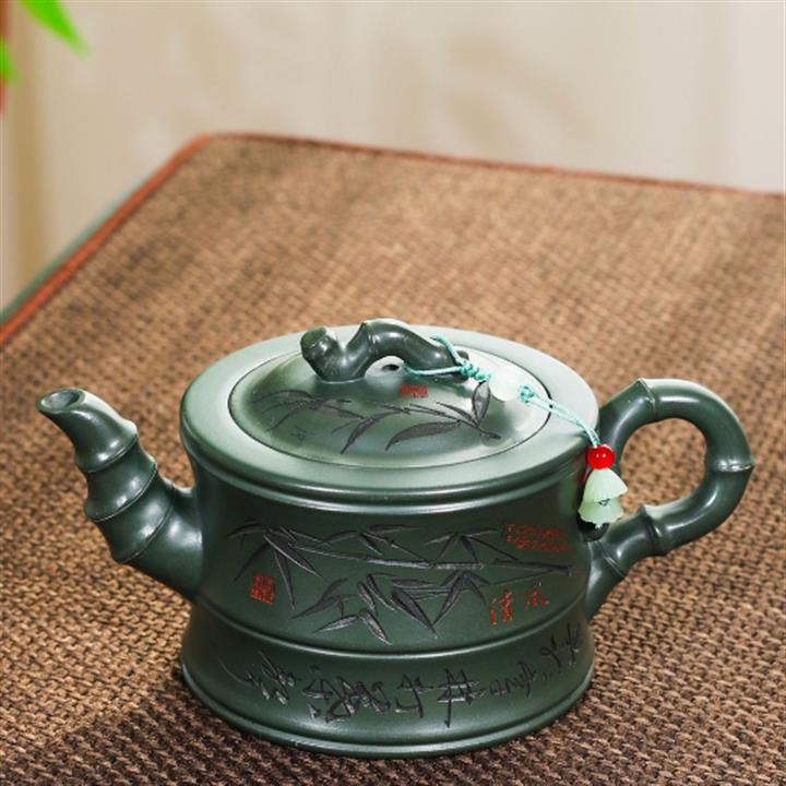 350cc原礦翡翠綠泥通身刻繪竹段茶壺POT9047